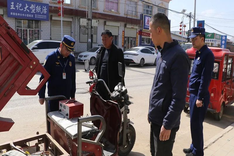 大隊(duì)采取“邊檢查、邊宣傳”的方式,對(duì)鄉(xiāng)鎮(zhèn)沿街商鋪、銷(xiāo)售門(mén)店等重點(diǎn)區(qū)域的電動(dòng)自行車(chē)存放、充電等情況進(jìn)行了檢查,為群眾現(xiàn)場(chǎng)講解了電動(dòng)自行車(chē)防火安全知識(shí)和火災(zāi)發(fā)生的常見(jiàn)原因、電動(dòng)自行車(chē)火災(zāi)的危害性、正確停放和充電的方法,提醒大家嚴(yán)禁在過(guò)道、樓梯間、安全出口等公共區(qū)域停放電動(dòng)自行車(chē),嚴(yán)禁私拉亂接臨時(shí)電線為電動(dòng)自行車(chē)充電的不安全行為,針對(duì)檢查中發(fā)現(xiàn)的電動(dòng)自行車(chē)違規(guī)充電行為,及時(shí)與車(chē)主進(jìn)行交流與溝通,勸導(dǎo)其采取正確、安全的方式充電。