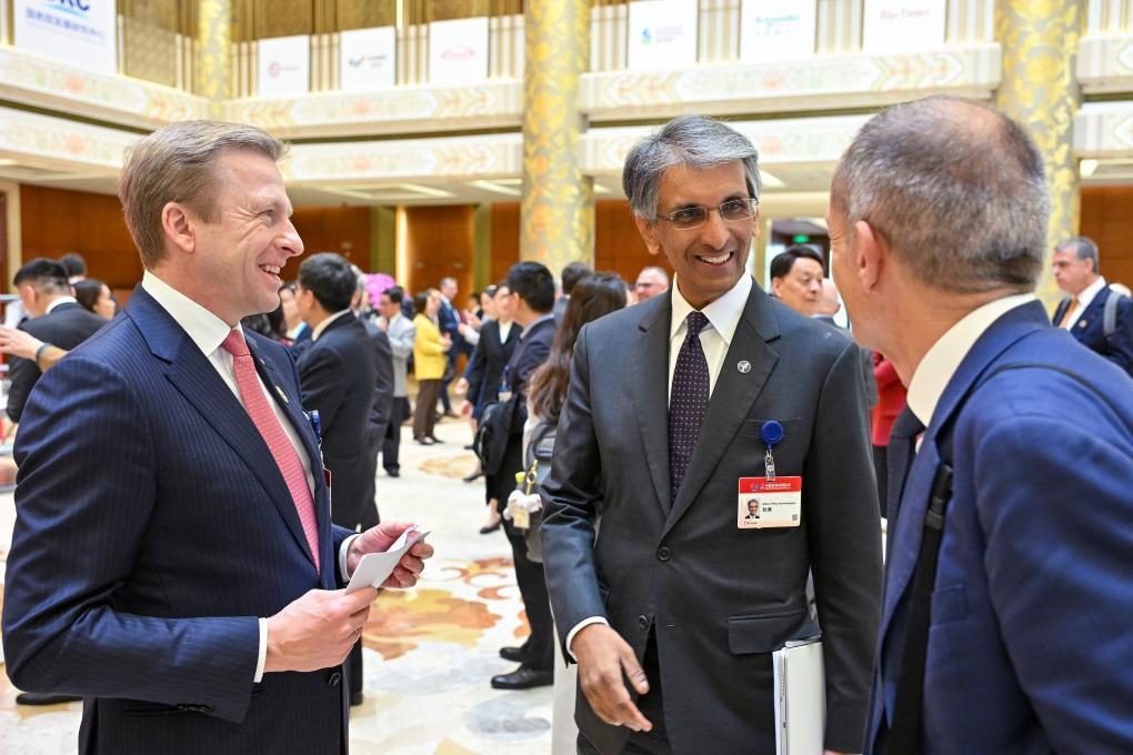 參加中國(guó)發(fā)展高層論壇2025年年會(huì)的嘉賓在論壇茶歇時(shí)交流。新華社記者 李鑫 攝
