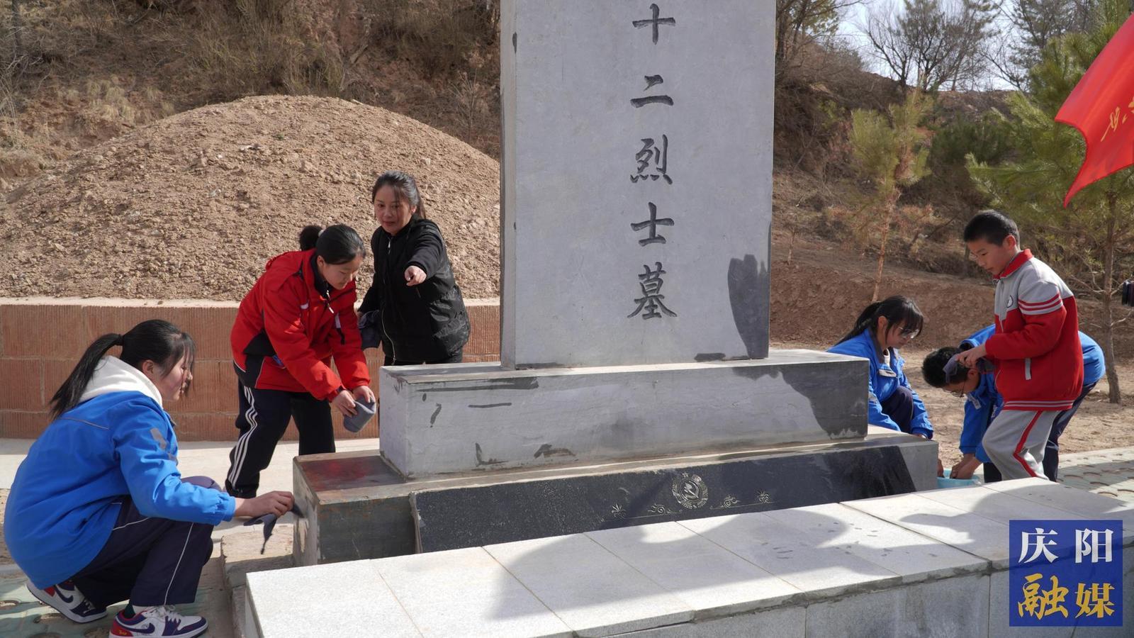 青山默默,浩氣長存……在南梁革命烈士紀(jì)念碑前,奏國歌、獻花籃、默哀、重溫入團誓詞,全體人員以崇敬之心表達(dá)對先烈的敬仰之情。在“紅飄帶”主題公園,師生們開展沉浸式戰(zhàn)爭體驗活動。在閆洼子四十二烈士墓、劉懋功將軍墓前,大家聆聽烈士事跡、默哀、清擦拭墓碑并獻花。