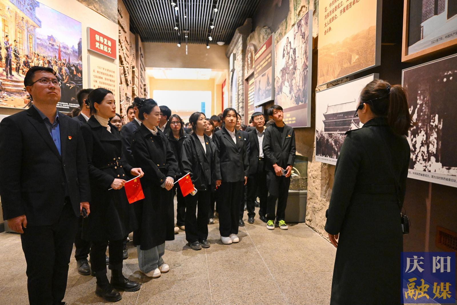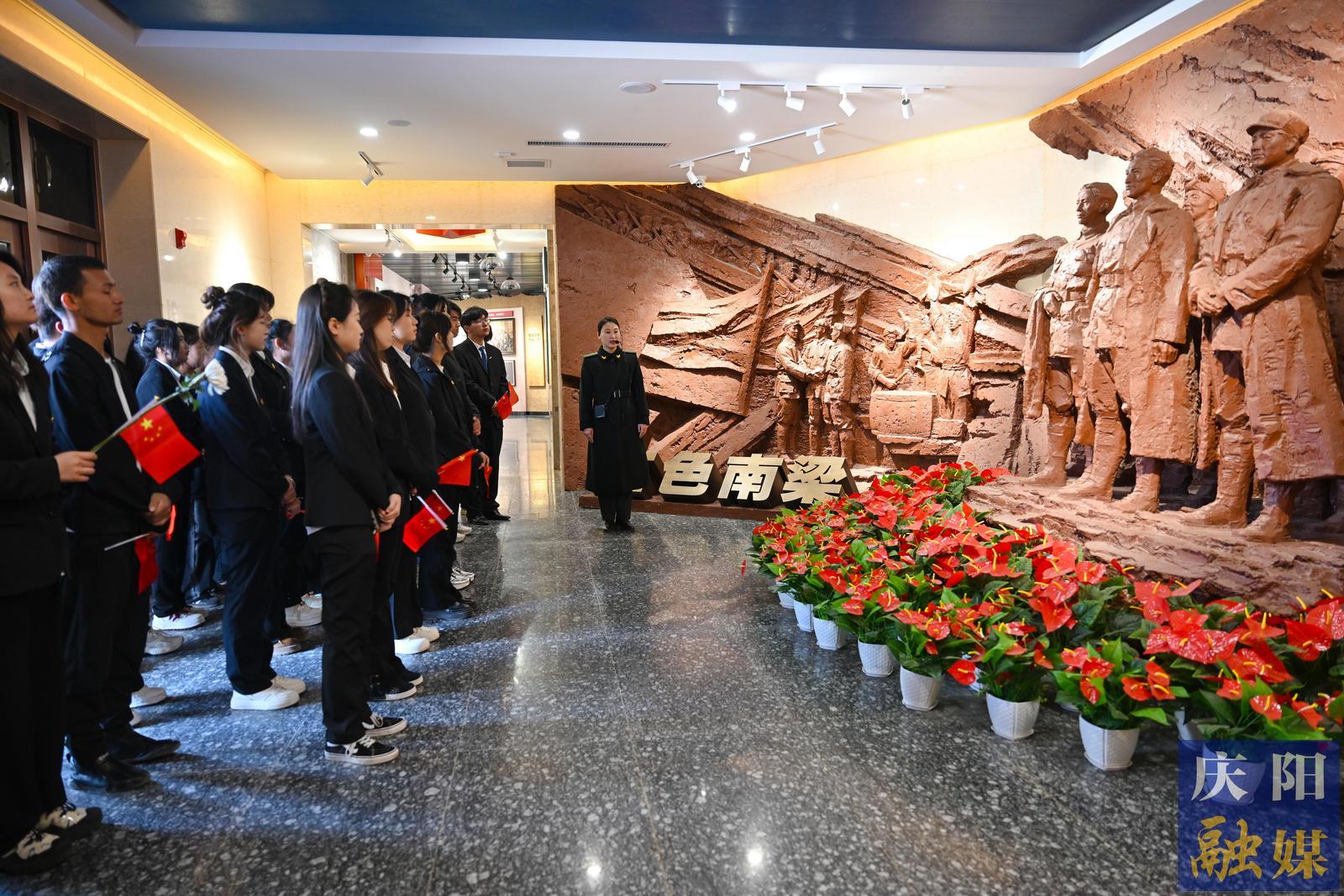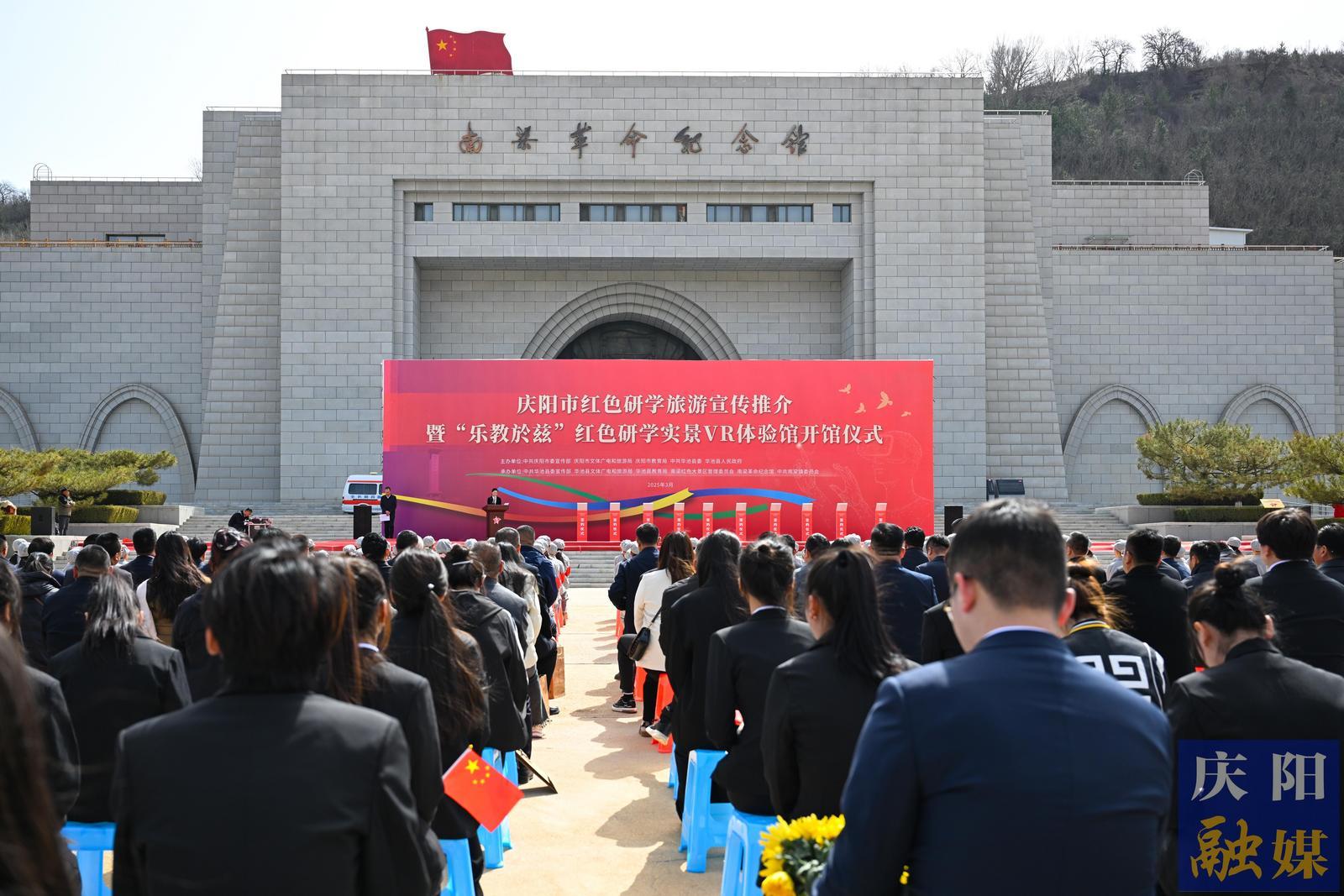 師生參加慶陽市紅色研學(xué)旅游宣傳推介暨“樂教於茲”紅色研學(xué)實景VR體驗館開館儀式。