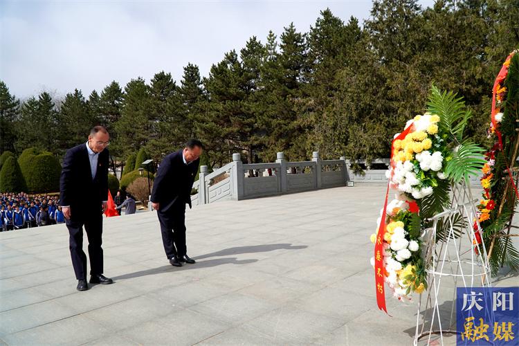 隴東學(xué)院附屬中學(xué)師生向南梁革命烈士紀(jì)念碑敬獻花籃。