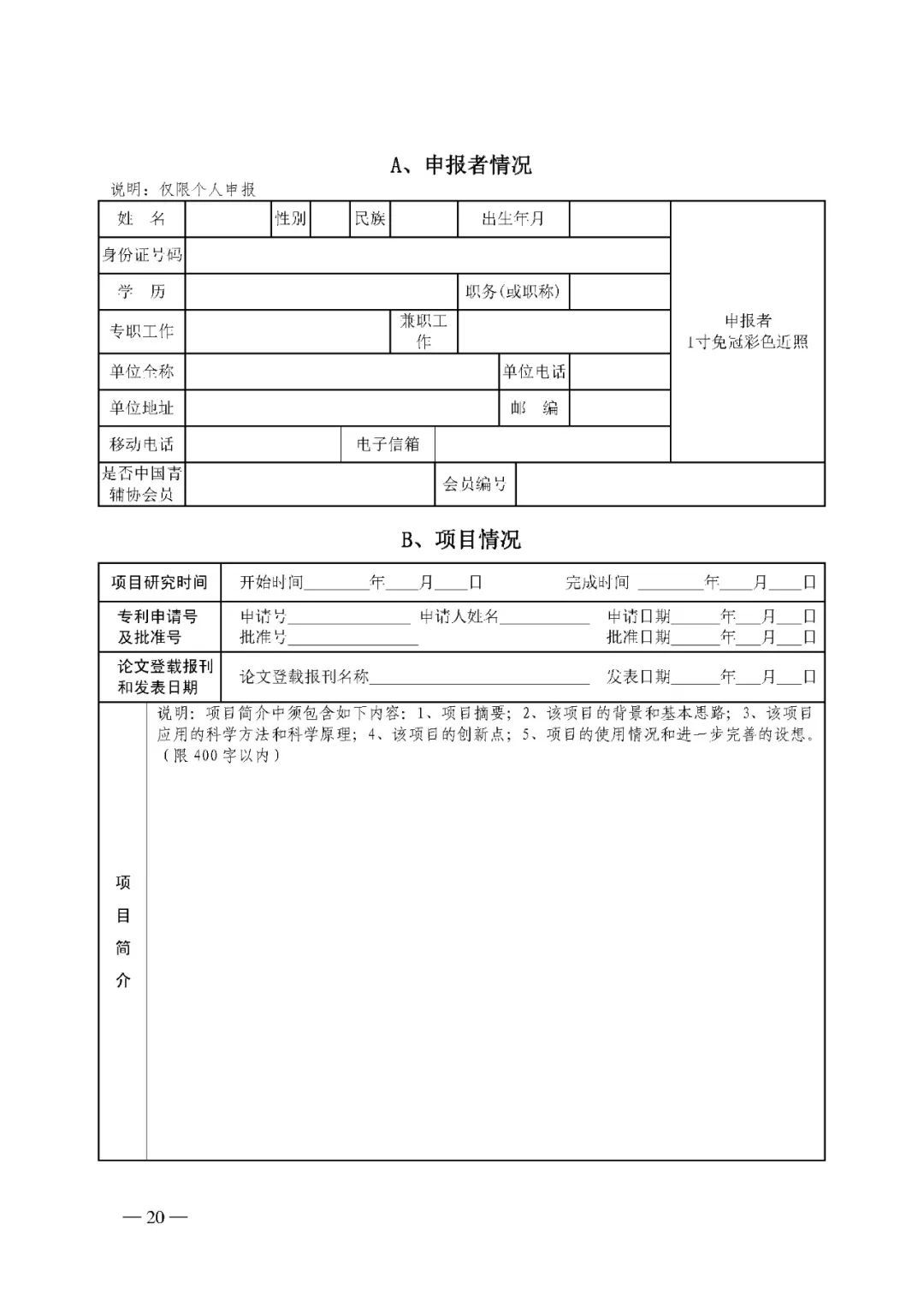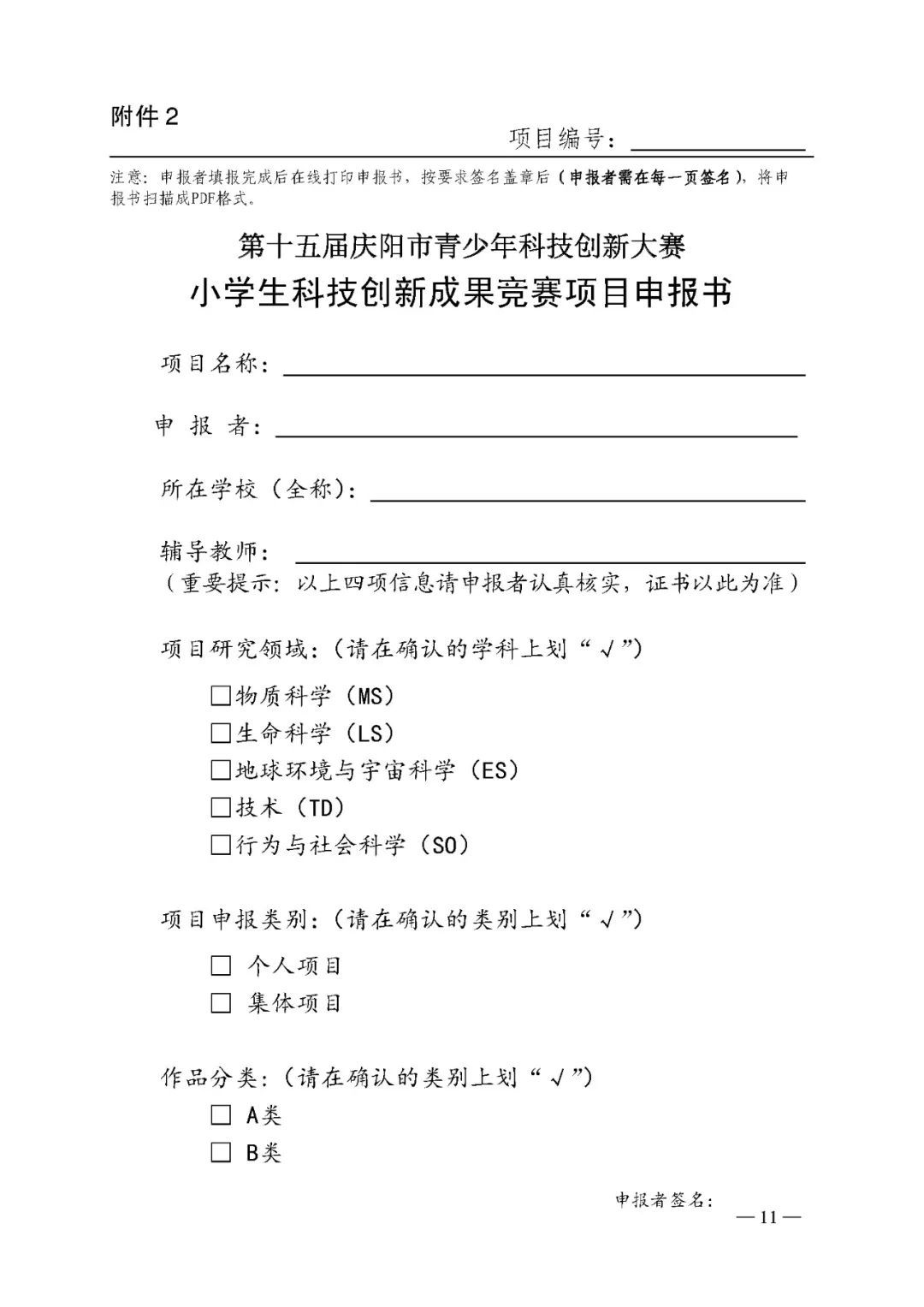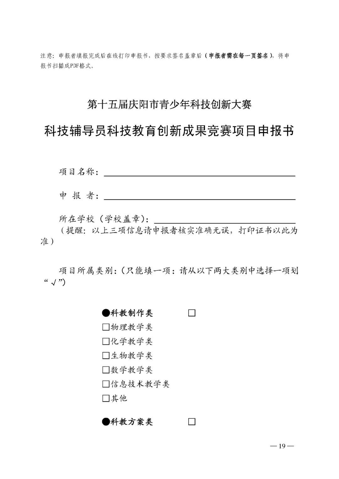 2.第十五屆慶陽(yáng)市青少年科技創(chuàng)新大賽申報(bào)書
