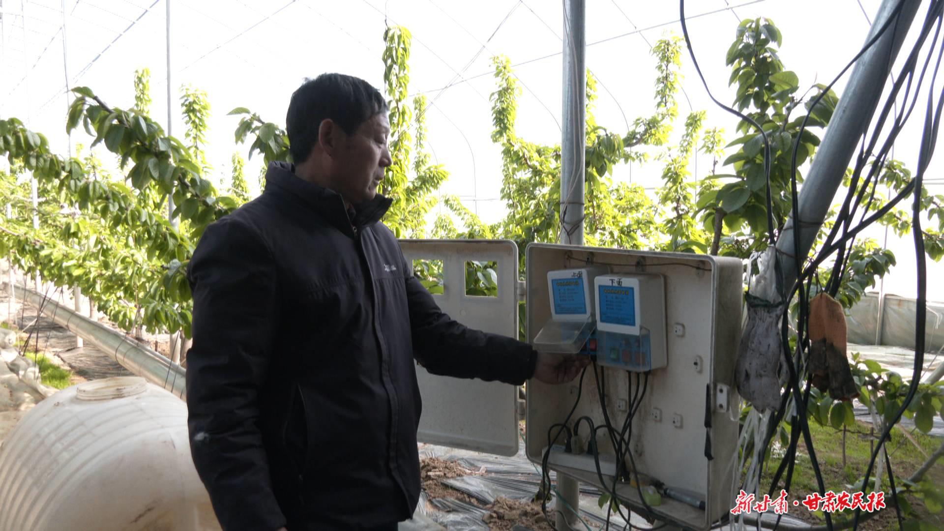 慶陽豐慶園種植農(nóng)民專業(yè)合作社負責(zé)人操控智能通風(fēng)開關(guān)。
