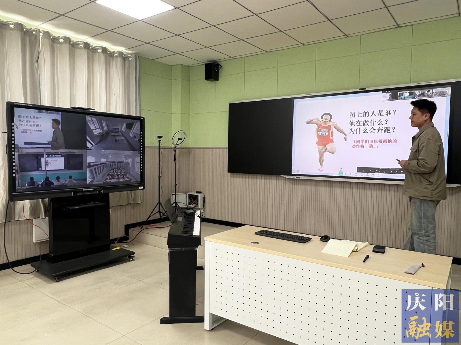 鎮(zhèn)原縣廟渠小學(xué)老師正在通過專網(wǎng)給鄉(xiāng)村教學(xué)點(diǎn)的學(xué)生上課。慶陽融媒記者 王華 攝