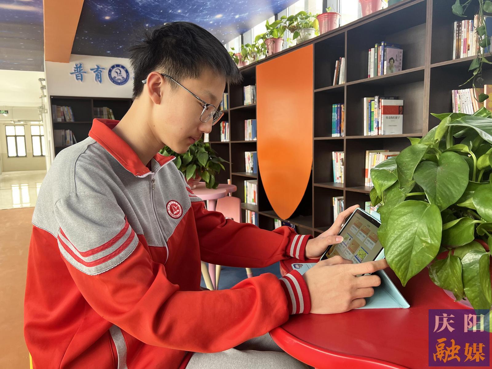 華池縣列寧學(xué)校八年級(jí)學(xué)生劉東淇正在操作學(xué)境平板。慶陽融媒記者 王華 攝