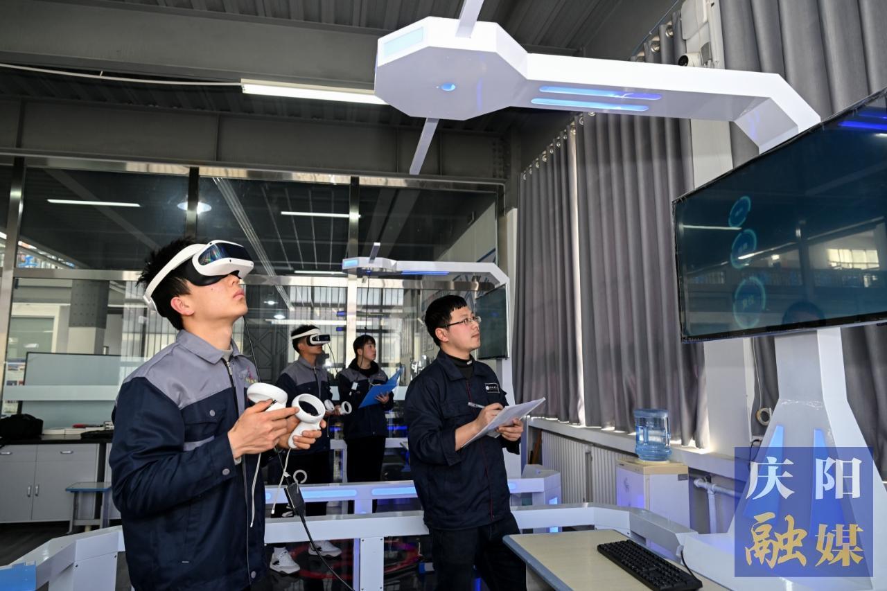 慶陽職業(yè)技術(shù)學(xué)院的學(xué)生通過VR實(shí)訓(xùn)平臺(tái)模擬拆解汽車驅(qū)動(dòng)電機(jī)并進(jìn)行操作考核。慶陽融媒記者 俄少飛 攝
