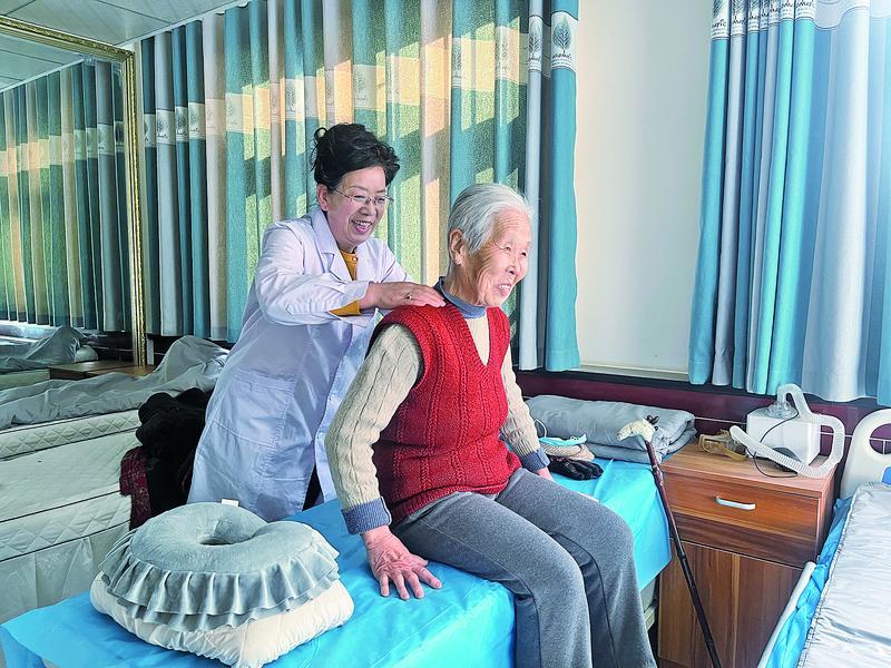 居民在安定路街道專署巷社區(qū)享受家門口中醫(yī)理療。