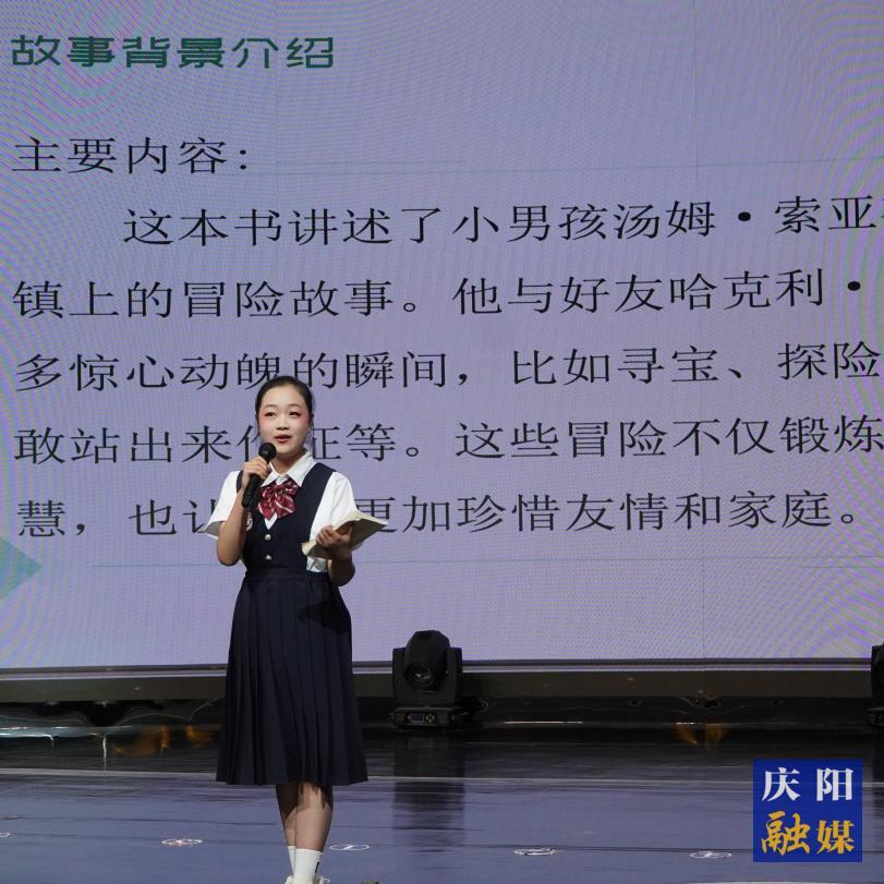 活動在詩朗誦《書頁里的光》中拉開帷幕,師生深情演繹經(jīng)典故事,詮釋閱讀對個人成長與文明傳承的深遠意義。西峰區(qū)周嶺小學校長常樓樓說,閱讀是學生成長的基石,他呼吁全體師生“多讀書、讀好書”,將閱讀融入生活日常。周嶺小學六(5)班卜涵玥同學宣讀《讀書倡議書》,號召家校攜手,共建書香校園。