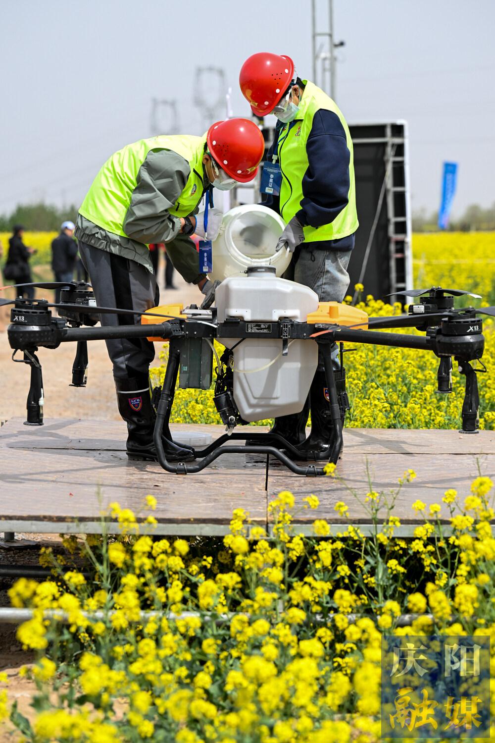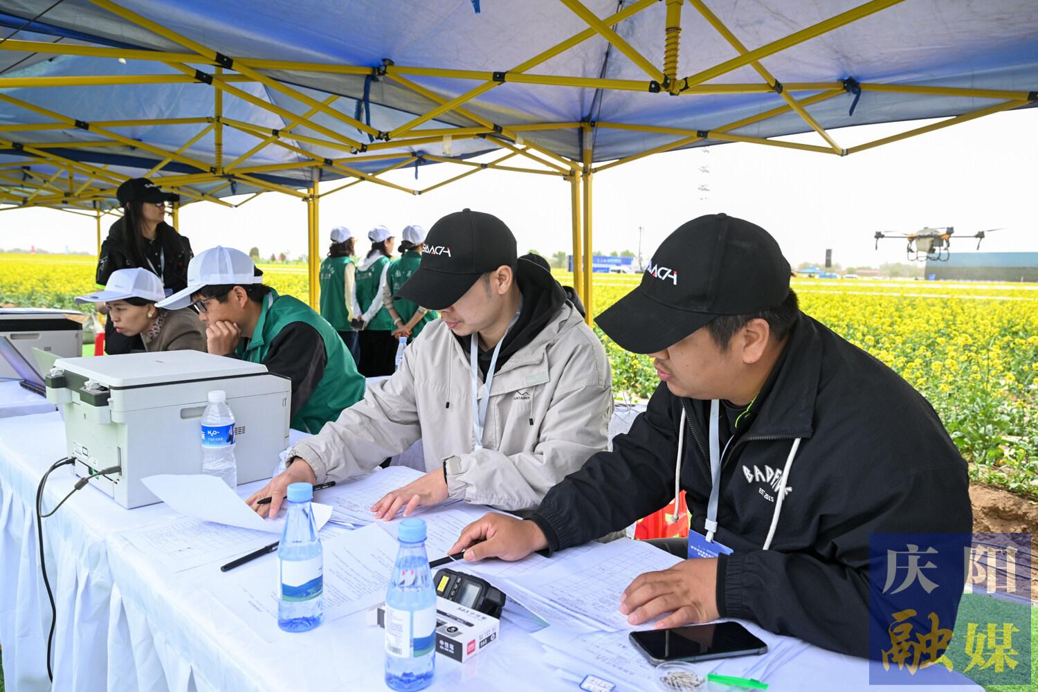 上午10時許,賽事正式啟動。來自聯(lián)通數(shù)據(jù)智能有限公司、甘肅堃辰智能科技有限公司、成都云策數(shù)據(jù)科技有限公司、甘肅新能達技術(shù)有限公司、甘肅藍飛低空飛行服務(wù)保障有限公司、甘肅萬世盛林業(yè)有害生物防治有限公司、三和數(shù)碼測繪地理信息技術(shù)有限公司、慶陽怡凡商貿(mào)有限公司和隴東學(xué)院、深圳技術(shù)大學(xué)城市交通與物流學(xué)院的9個企業(yè)、高校參賽隊,在金浪翻滾的油菜花海,開展精準(zhǔn)避障、快速換藥、均勻噴灑等作業(yè)場景,以毫米級誤差詮釋“生命藥液”的終極藝術(shù),演繹算法與自然共譜的豐收序章。比賽緊緊聚焦低空經(jīng)濟在農(nóng)林植保領(lǐng)域的創(chuàng)新應(yīng)用,開辟智能化、精準(zhǔn)化、無人化的植保新路徑,通過技術(shù)比拼與場景實踐,實現(xiàn)科技創(chuàng)新與現(xiàn)代農(nóng)業(yè)深度融合,為鄉(xiāng)村振興和農(nóng)業(yè)高質(zhì)量發(fā)展注入強勁新動能。