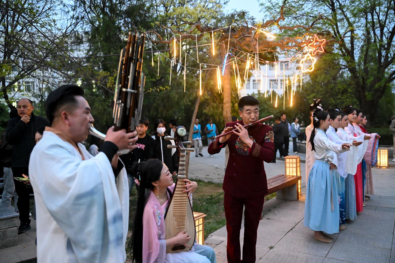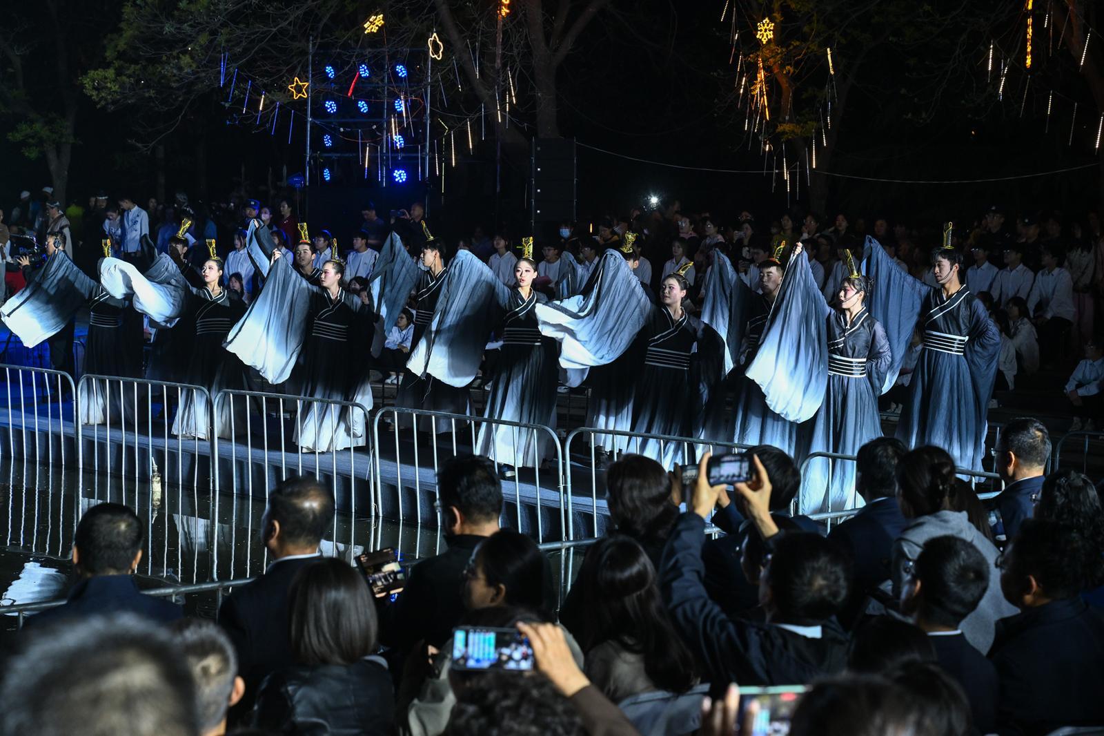 參演人員身著古裝,演奏民族樂器歡迎觀眾。