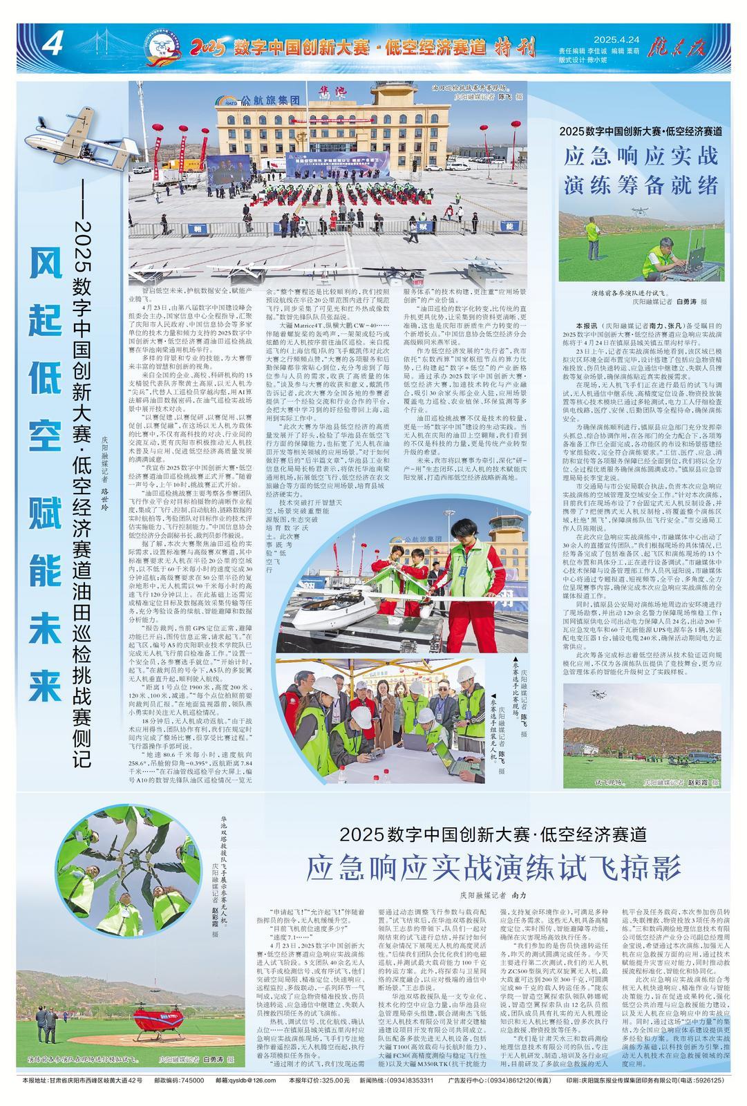 備受矚目的2025數(shù)字中國(guó)創(chuàng)新大賽·低空經(jīng)濟(jì)賽道應(yīng)急響應(yīng)實(shí)戰(zhàn)演練將于4月24日在鎮(zhèn)原縣城關(guān)鎮(zhèn)五里溝村舉行。