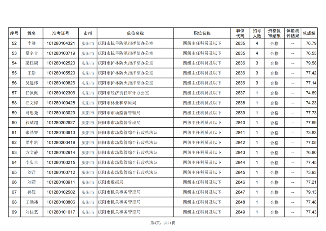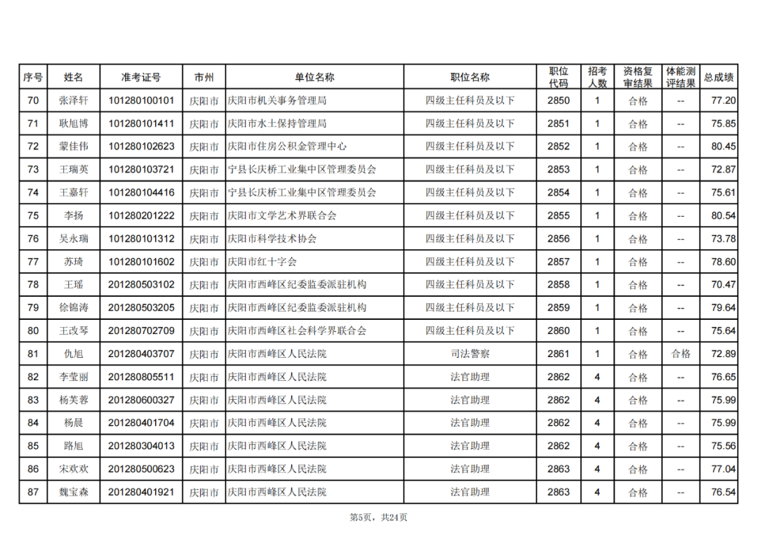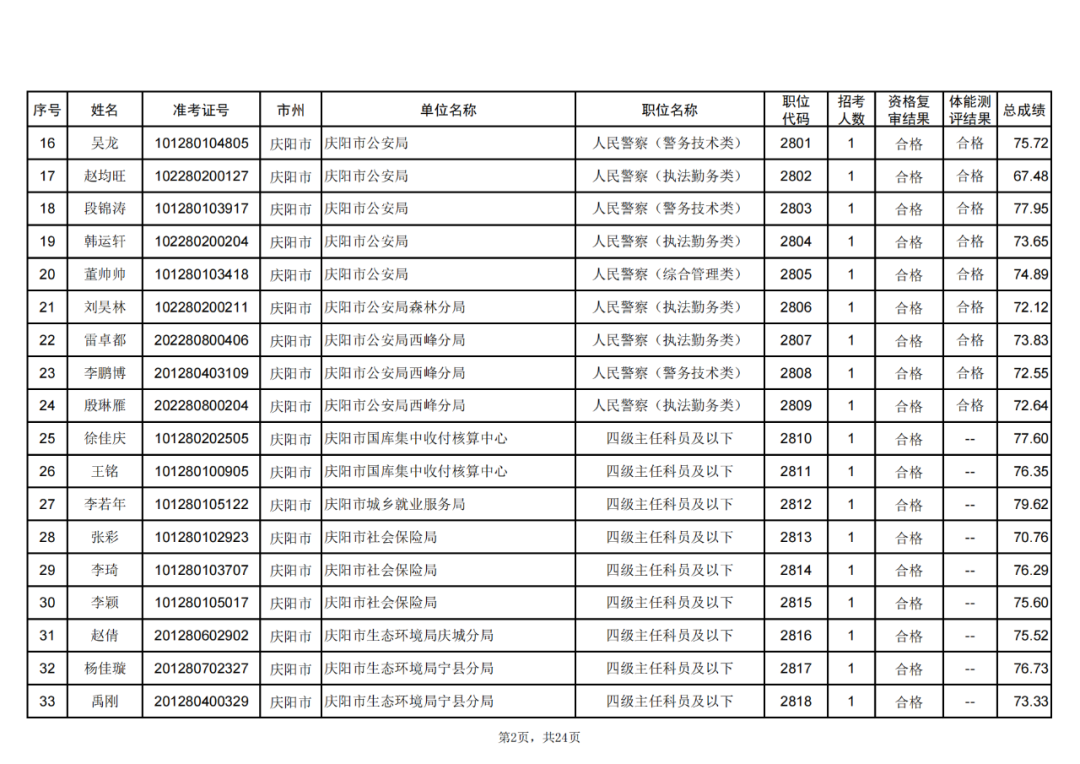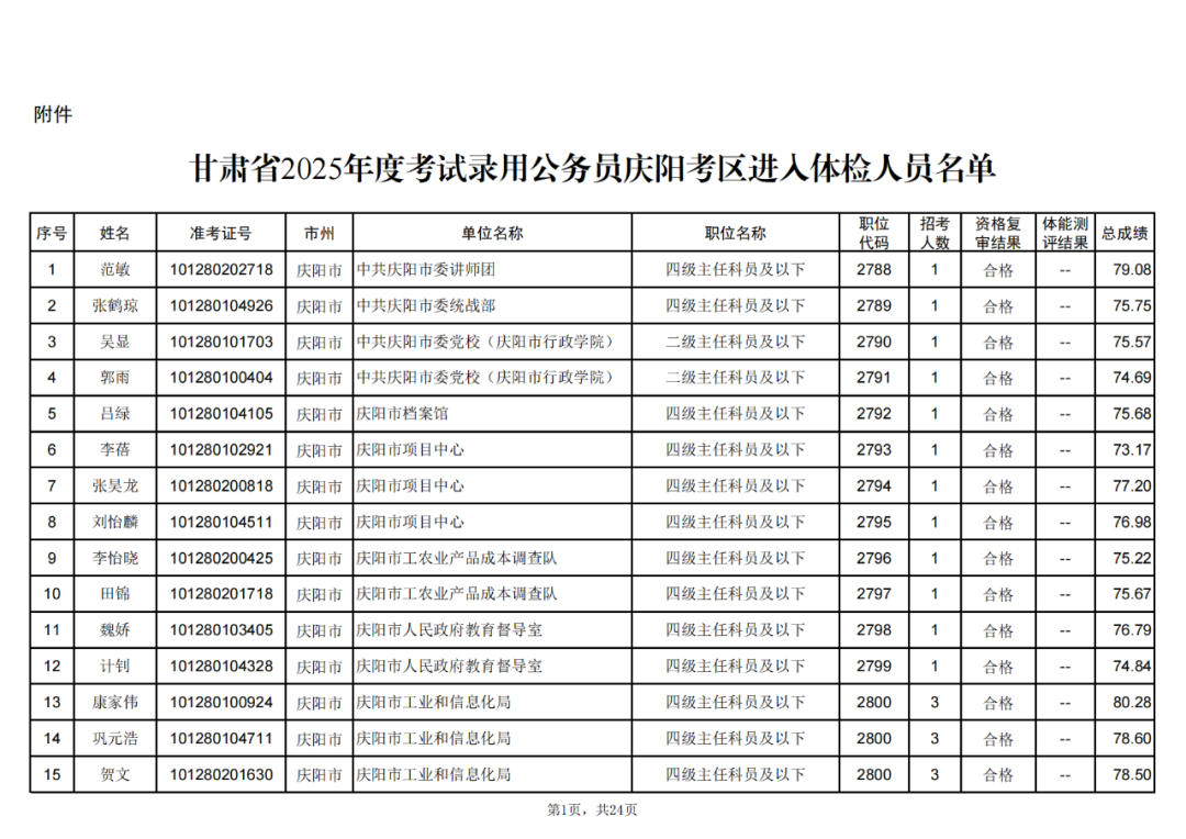 附件:甘肅省2025年度考試錄用公務(wù)員慶陽考區(qū)進(jìn)入體檢人員名單