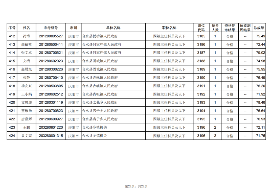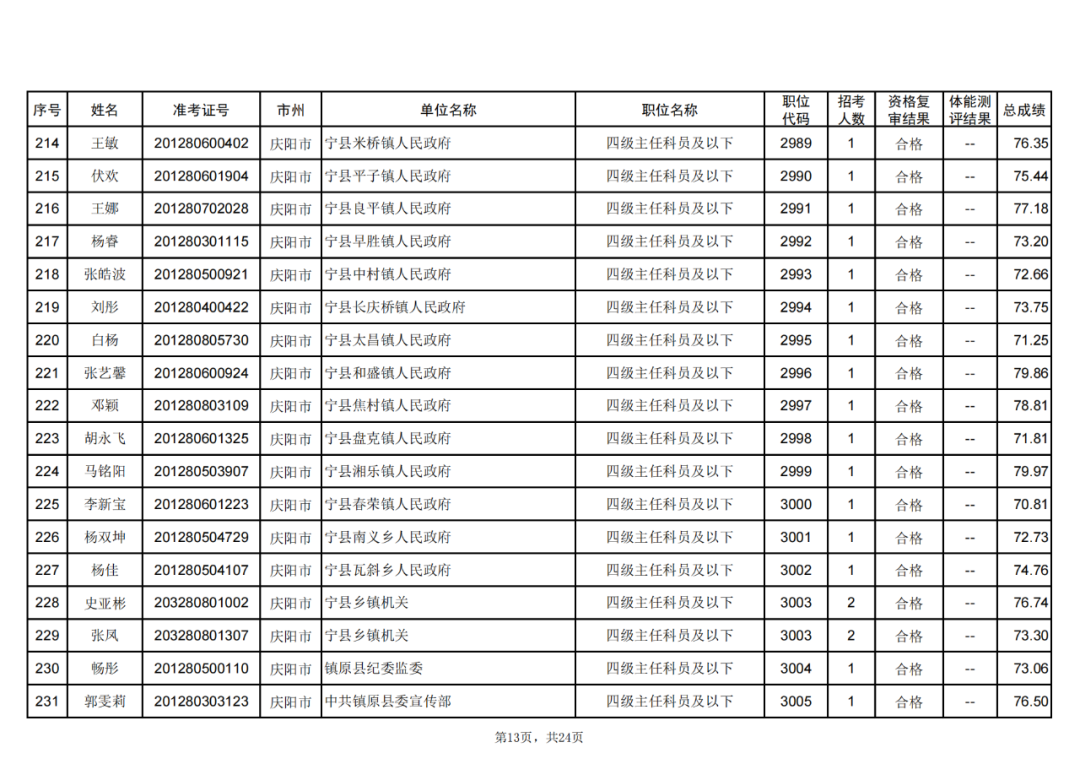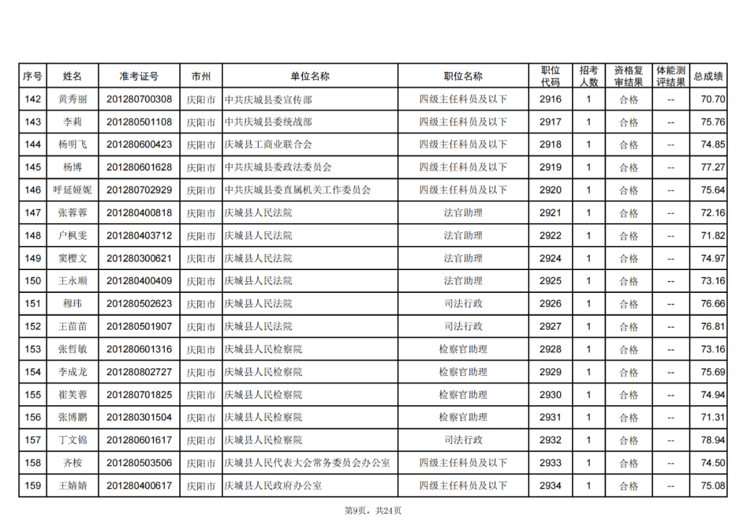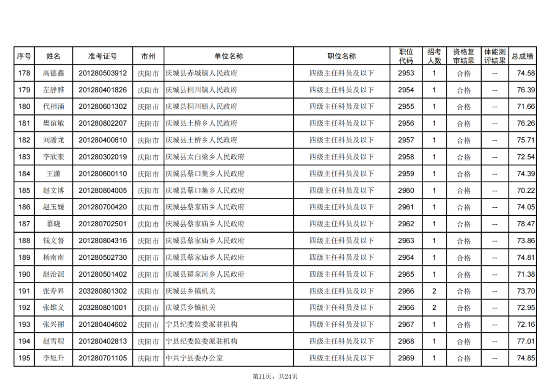 附件:甘肅省2025年度考試錄用公務(wù)員慶陽考區(qū)進(jìn)入體檢人員名單