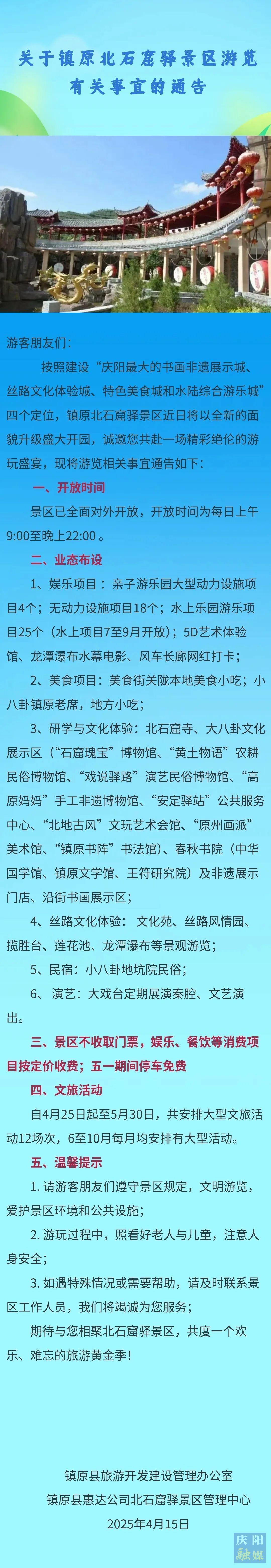 據(jù)了解,煥新后的北石窟驛景區(qū)占地448畝,打造鎮(zhèn)原文化展示、北石窟驛站、上善若水體驗(yàn)、北石窟寺四大板塊,配套越野賽車基地、摩天輪等20余項(xiàng)體驗(yàn)項(xiàng)目,預(yù)計(jì)年接待游客50萬人次。此次推介月活動(dòng)將持續(xù)至5月底,通過線上線下聯(lián)動(dòng)推廣,全面展現(xiàn)鎮(zhèn)原“歷史名城·書畫之鄉(xiāng)”的獨(dú)特魅力。