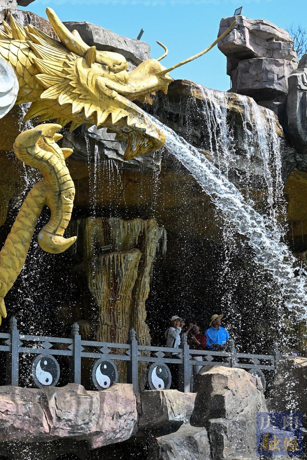 游客在龍?zhí)镀俨己蟮乃煻磧?nèi)打卡。