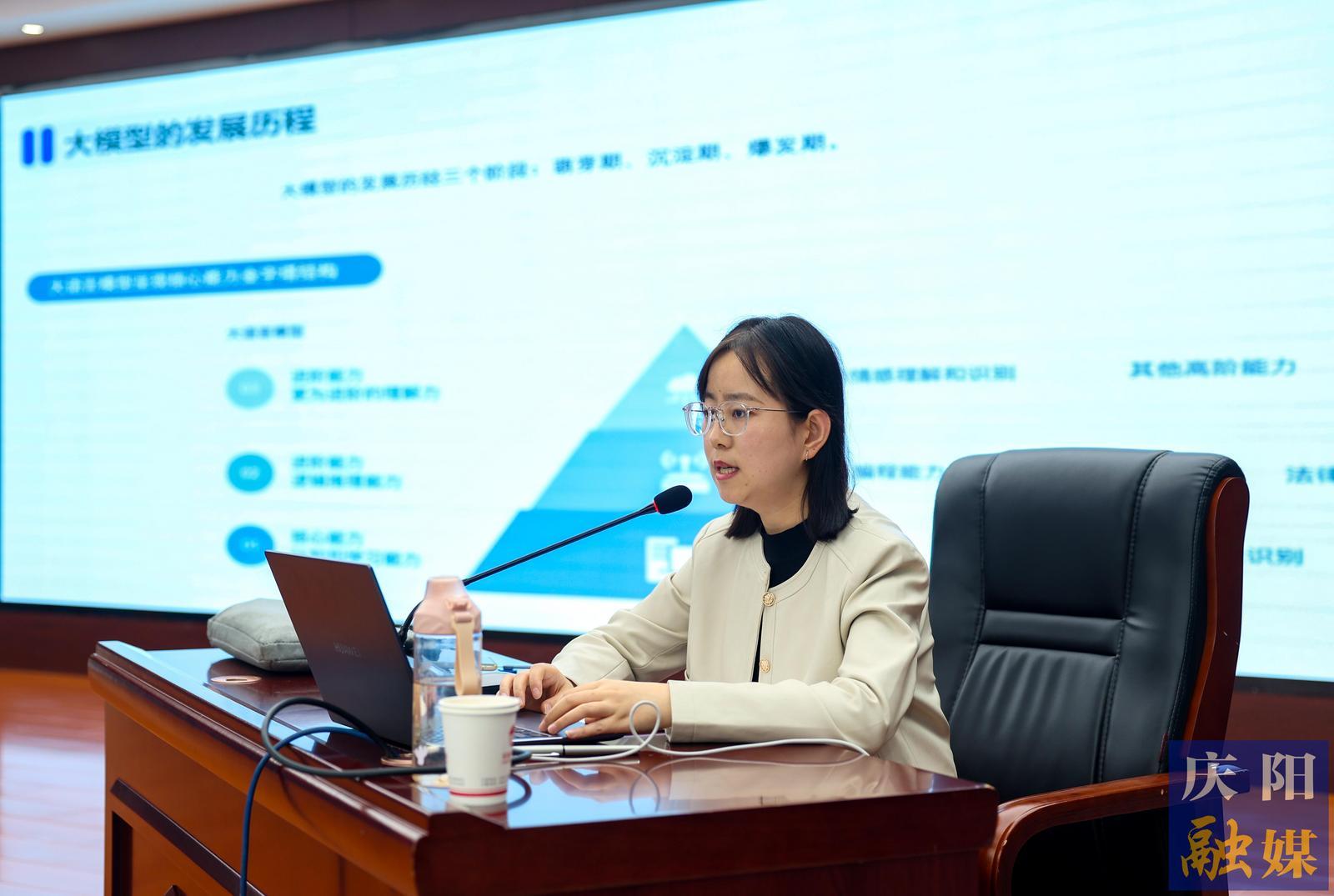 新甘肅云服務中心副總監(jiān)楊曉瑞以《AI重塑工作模式——從效率工具到智能伙伴》為題授課(4月22日攝)。