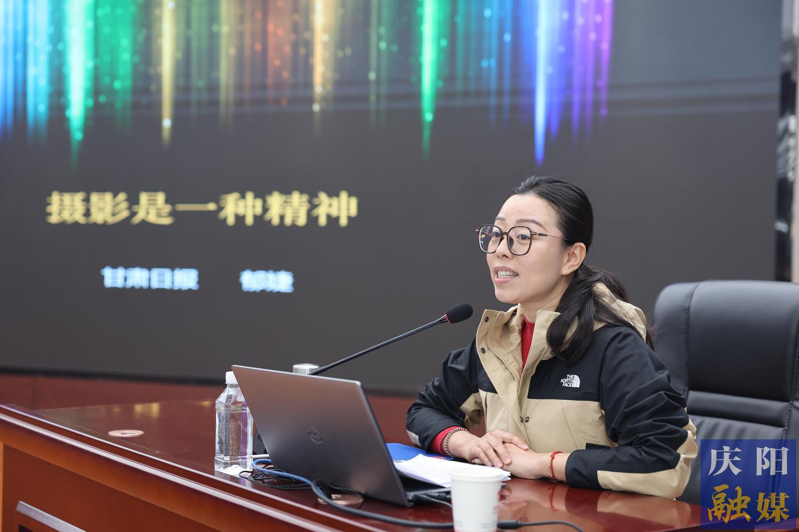 甘肅日報社攝影部副主任郁婕以《攝影是一種精神》為題授課(4月23日攝)。