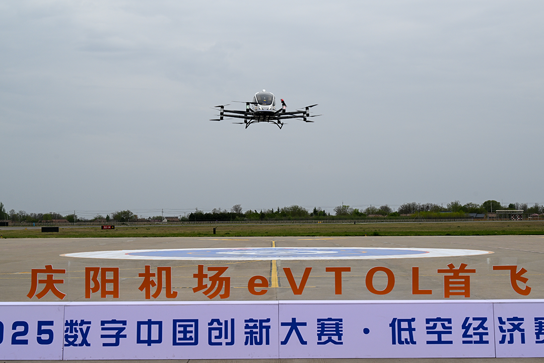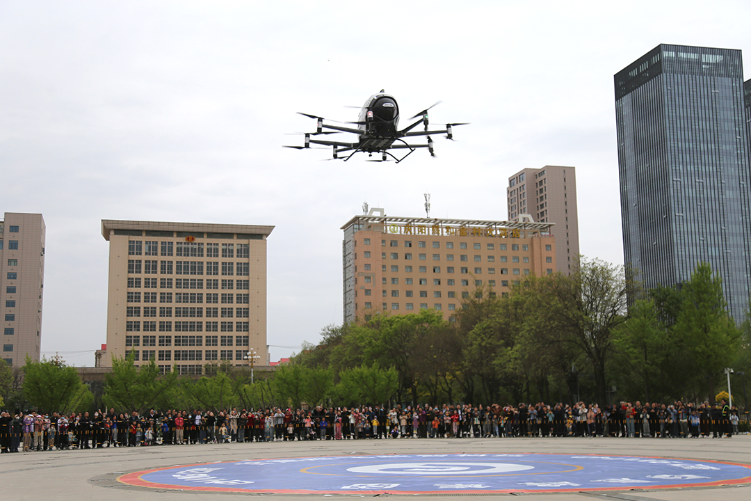 在慶陽機(jī)場,億航智能CH216—S成功完成演示飛行。