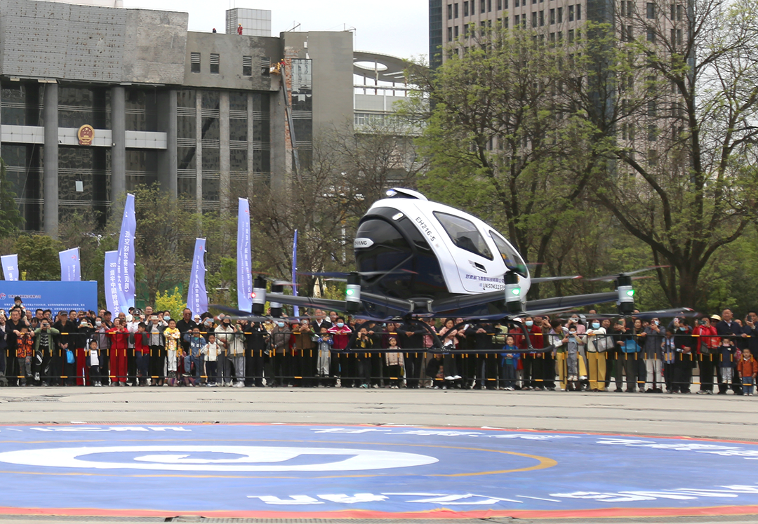在和諧廣場,億航智能EH216—S平穩(wěn)升空。