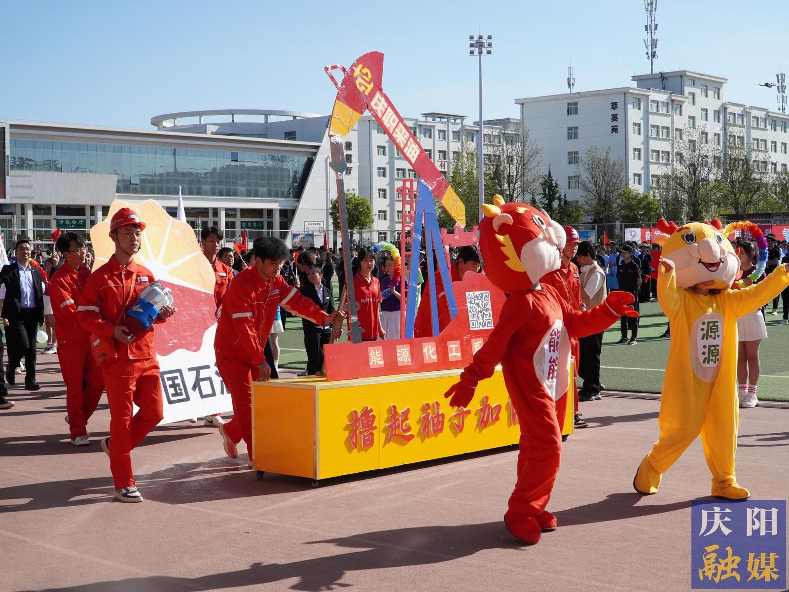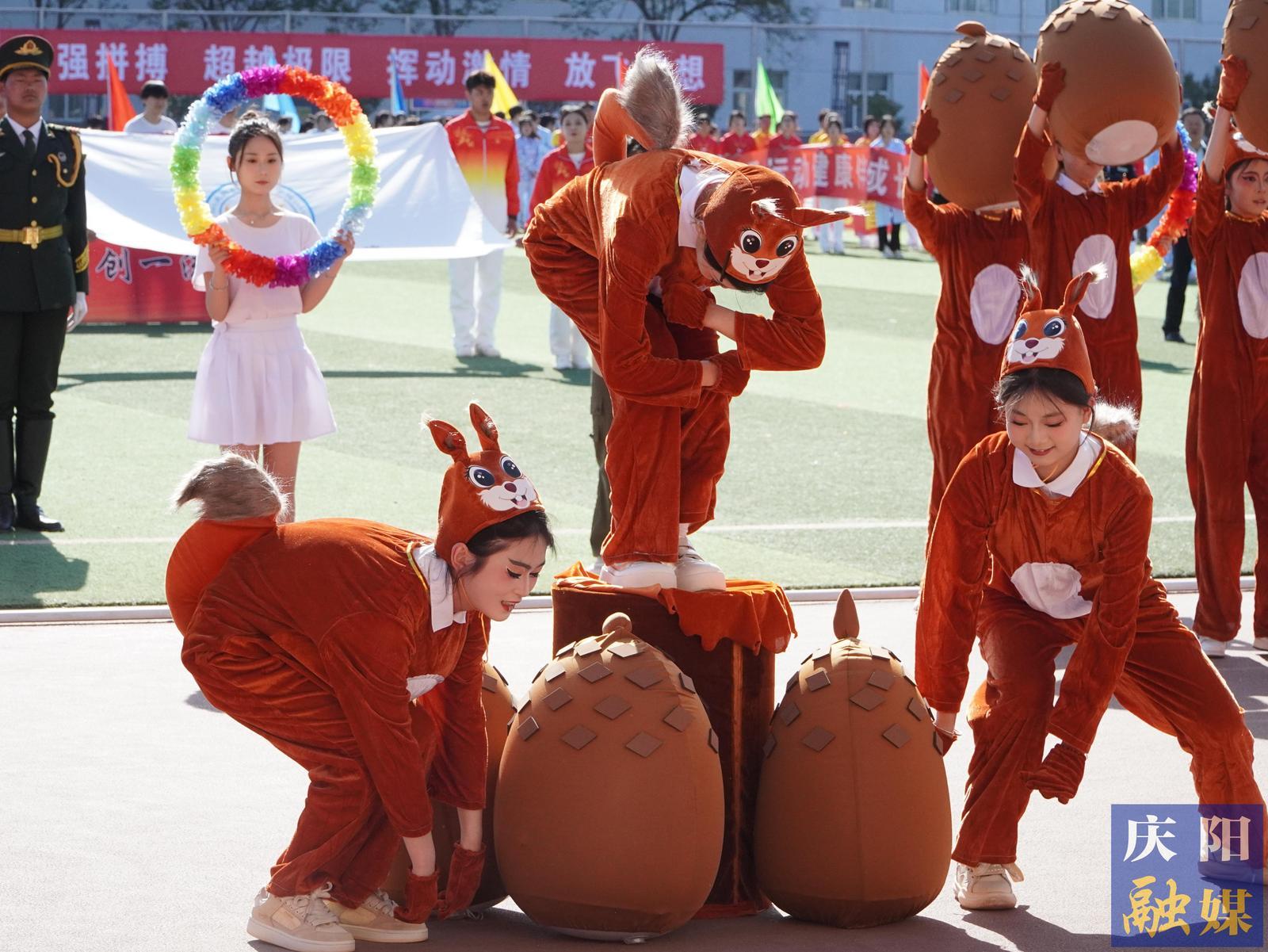 花束隊手捧繽紛花環(huán),如虹彩點亮賽場;彩旗隊揮舞64面旗幟,似流云涌動青春。裁判員方陣步履堅定,以專業(yè)與公正為賽事護航;馬克思主義學院教師高舉立德樹人大旗,步履間盡顯鑄魂育人的赤誠;智能工程系師生攜無人機列陣,科技與創(chuàng)新之光照耀賽場;文化旅游系攜農(nóng)文旅融合藍圖,能源化工系高呼“我為祖國獻石油”,技師學院舞動籃球炫技,教育系賡續(xù)師道匠心……13支方陣各展風采,將專業(yè)特色與奮斗理想融入鏗鏘步伐,匯成慶陽技術學院高質(zhì)量發(fā)展的生動剪影。