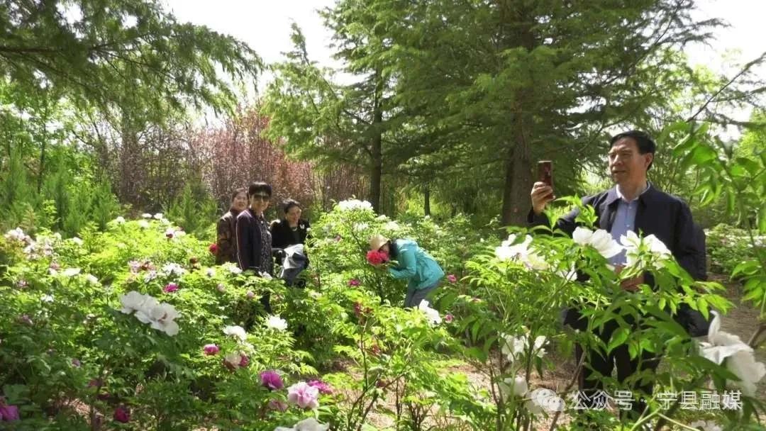 同樣,假期期間,走進位于寧縣瓦斜鄉(xiāng)的昔家牡丹園,紅如烈火、粉似朝霞、白勝玉雪的牡丹在綠葉映襯下盡顯“國色天香”的雍容氣度,微風拂過,花香四溢,游客紛紛駐足拍照。來自西峰區(qū)的游客張敏說:“在抖音上看到這里的牡丹開得正盛,特地帶著家人來游玩,花海比視頻里更震撼!” 景區(qū)還推出“網紅打卡攝影”等活動,不少攝影愛好者專程前來采風。