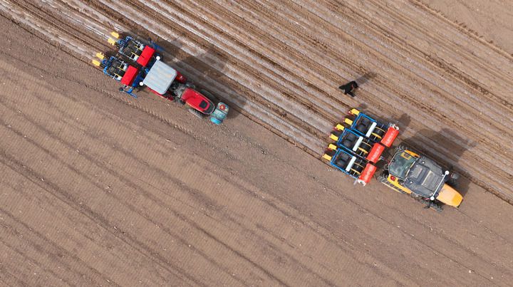 為了降低成本、統(tǒng)一標準,五個墩村的村集體經(jīng)濟公司還為農(nóng)戶提供深松、犁地、鋪膜等機械租賃服務(wù),最新上架的全程復式導航播種機能一次完成施肥、鋪膜、鋪滴灌帶、播種。