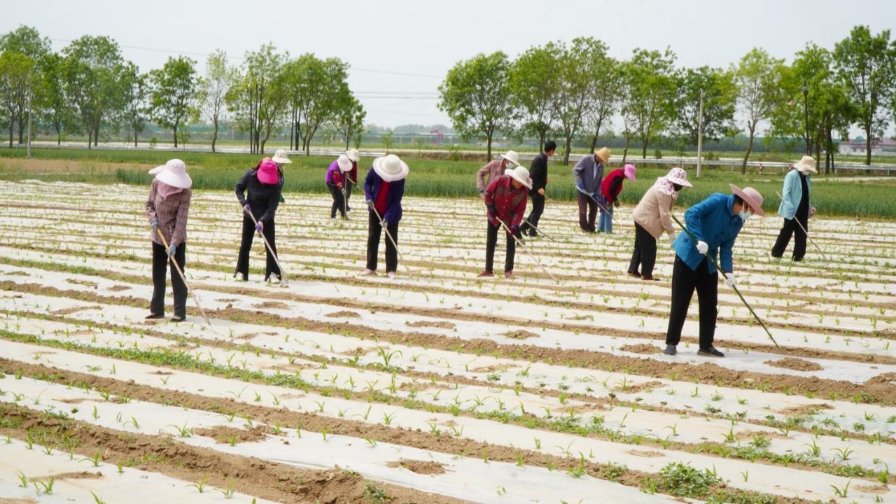 5月8日,記者來到寧縣和盛鎮(zhèn)南街村,30多名群眾正在800多畝的玉米大田里放苗。一根簡單的竹棍頂端綁上一小段彎曲的鐵絲,一伸一勾,玉米苗就從地膜里"探"出了頭。今年60多歲的楊金漢家有7畝多地,6畝都流轉(zhuǎn)給了合作社,他和老伴有空就在合作社打工,春天放玉米苗、除草、夏天收割,秋天復(fù)種,一年到頭也有三萬多元的收入?!爸刑┝鬓D(zhuǎn)了村上的土地,我們在這里務(wù)工,一天80元,工資都是很快結(jié)清,我們干活也很積極。”