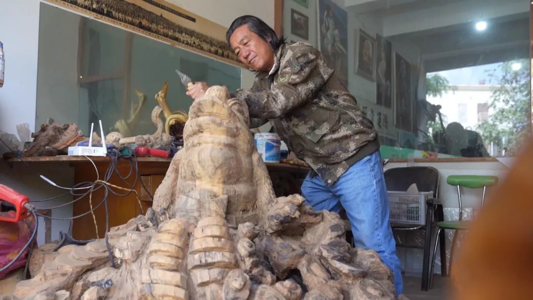 “我今年都50多歲了,快六十歲了,從事根雕20多年,我很熱愛這一方面,覺得把我這個愛好能變成我的事業(yè),確實沒有違背我的初衷?!备袼嚾伺頃苑逭f。