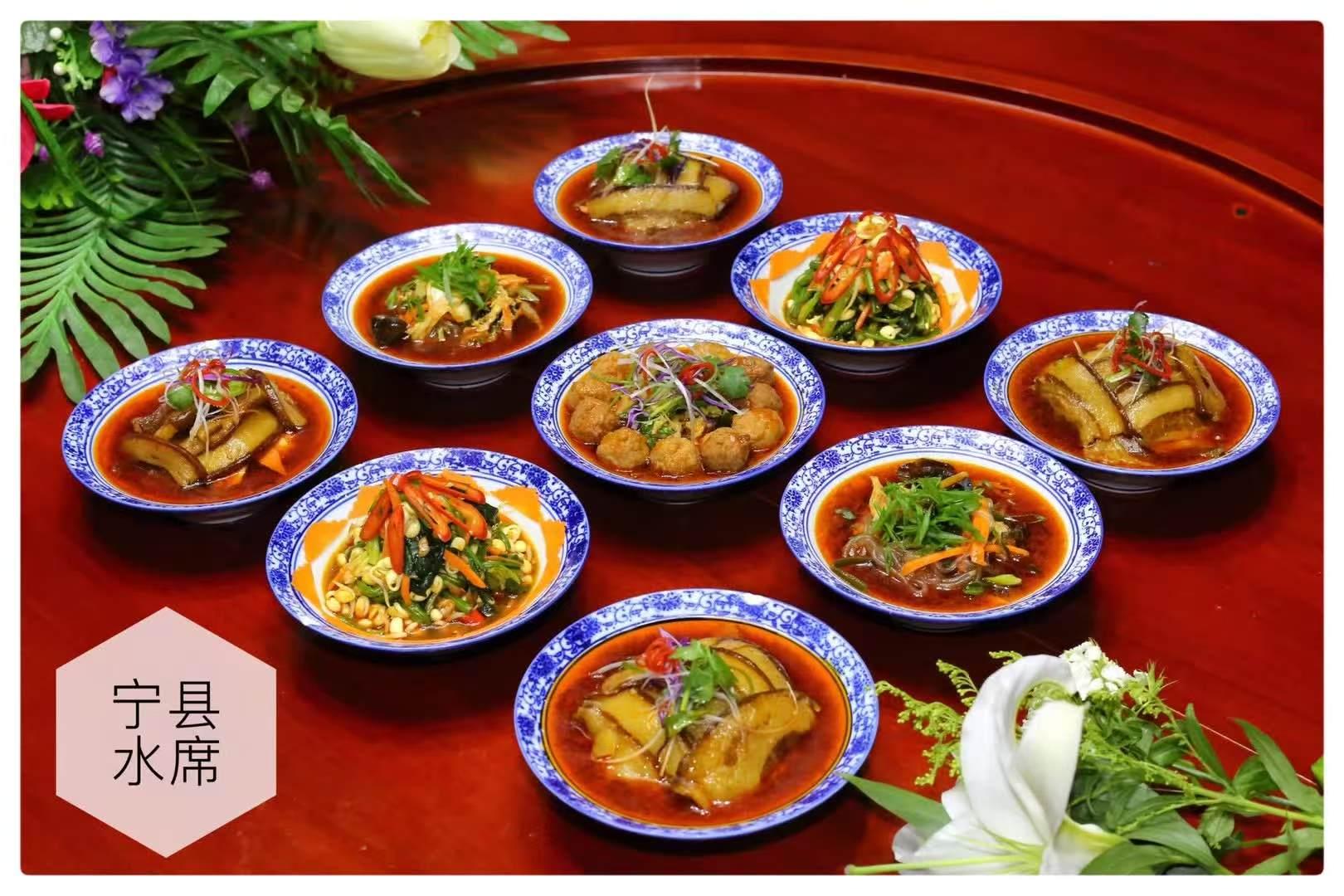 隨著時(shí)代變遷,水花席從婚喪嫁娶的鄉(xiāng)宴走向更廣闊的舞臺(tái)。2018年,寧縣啟動(dòng)非遺保護(hù)工程,水花席被列為重點(diǎn)申報(bào)項(xiàng)目。農(nóng)家樂經(jīng)營者韓天章將傳統(tǒng)宴席改良為“九鼎八簋”品牌,選用農(nóng)家黑豬肉、漿水豆腐、胡麻油等本土食材,既保留古法風(fēng)味,又契合現(xiàn)代健康理念。銀西高鐵開通后,天章農(nóng)家樂借勢推廣,讓這道“周禮宴”成為游客品味寧縣文化的窗口。