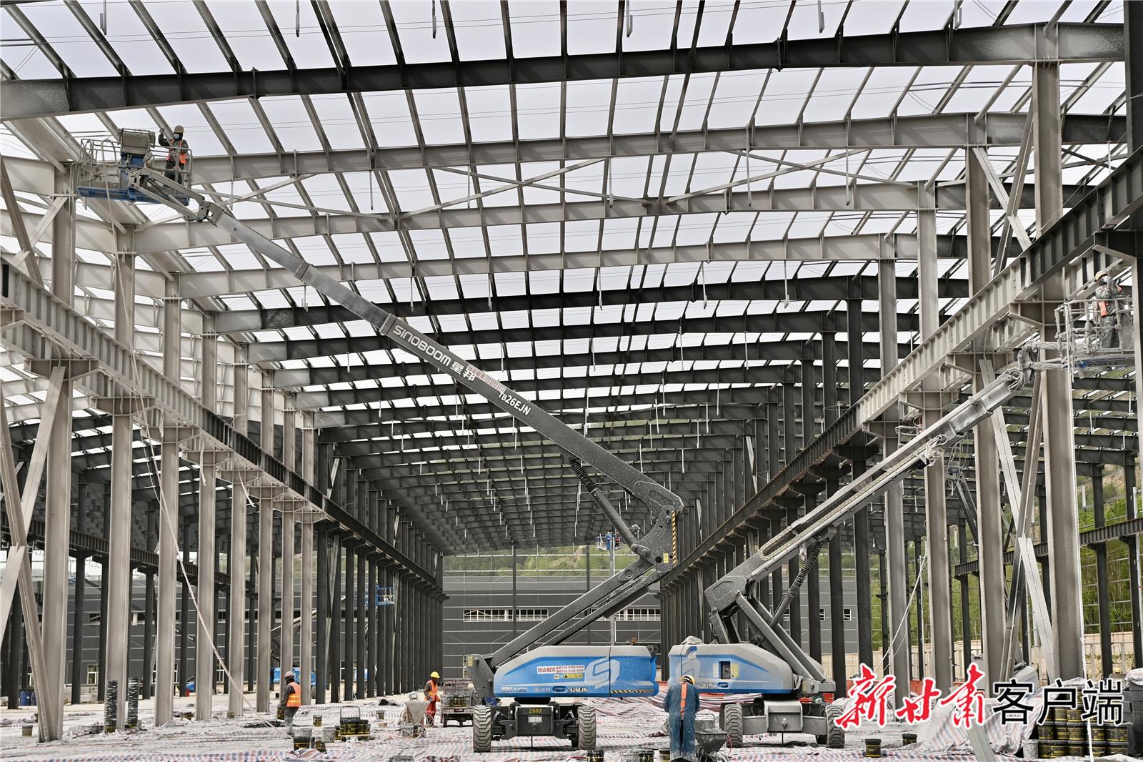 該項目于2024年4月開工建設(shè)。目前,1號廠房已完成鋼結(jié)構(gòu)施工,2號廠房正在安裝相關(guān)設(shè)備,進(jìn)場的鍍鋅設(shè)備正在安裝中,廠區(qū)內(nèi)道路硬化和水暖電消防管道施工等全部完成。