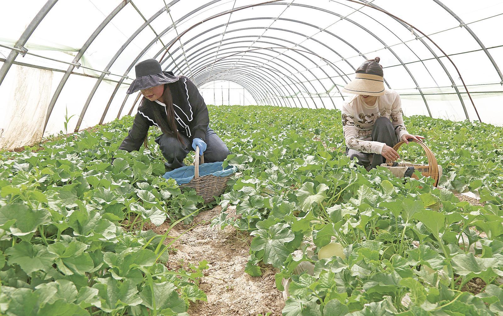 游客在肖金鎮(zhèn)紙坊村采摘甜瓜