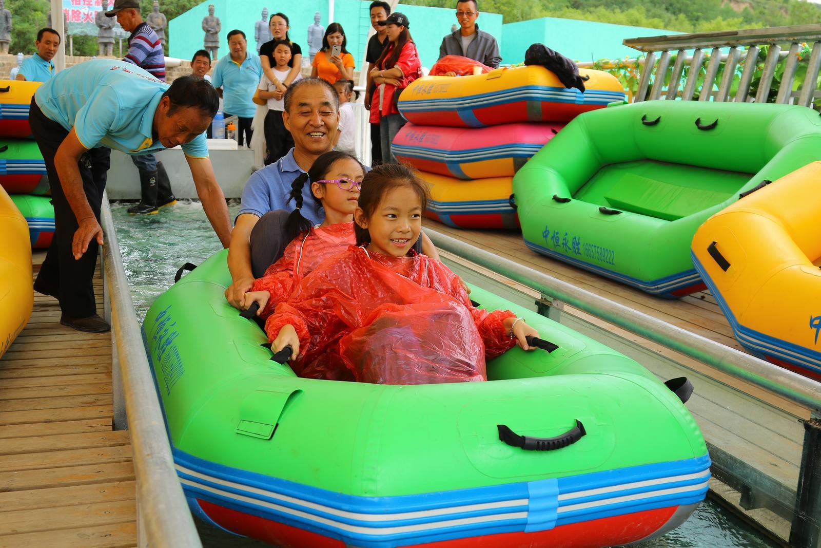 游人在藥王洞養(yǎng)生小鎮(zhèn)玻璃水滑處游玩