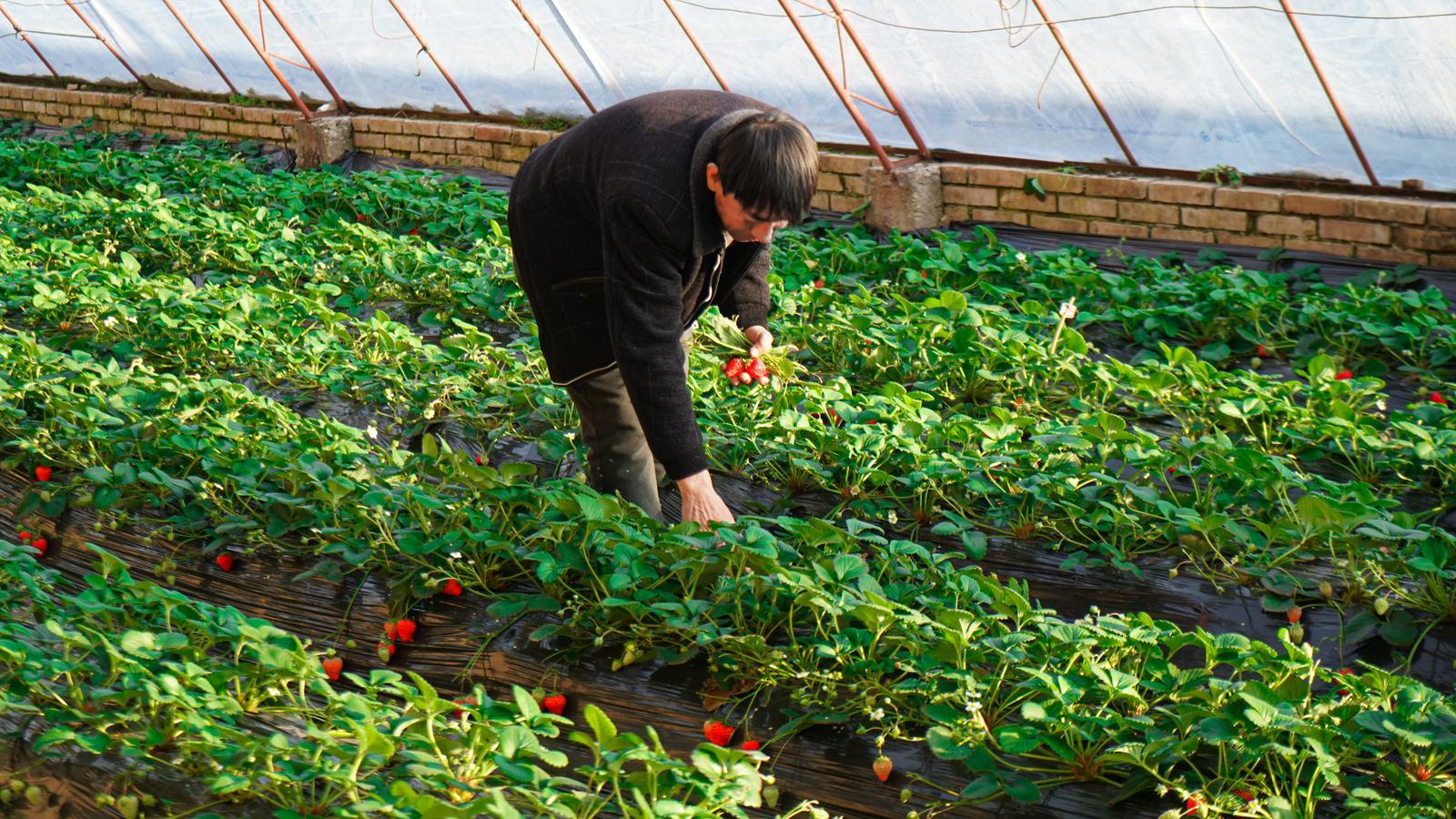 游客在玄馬鎮(zhèn)賈橋村采摘草莓