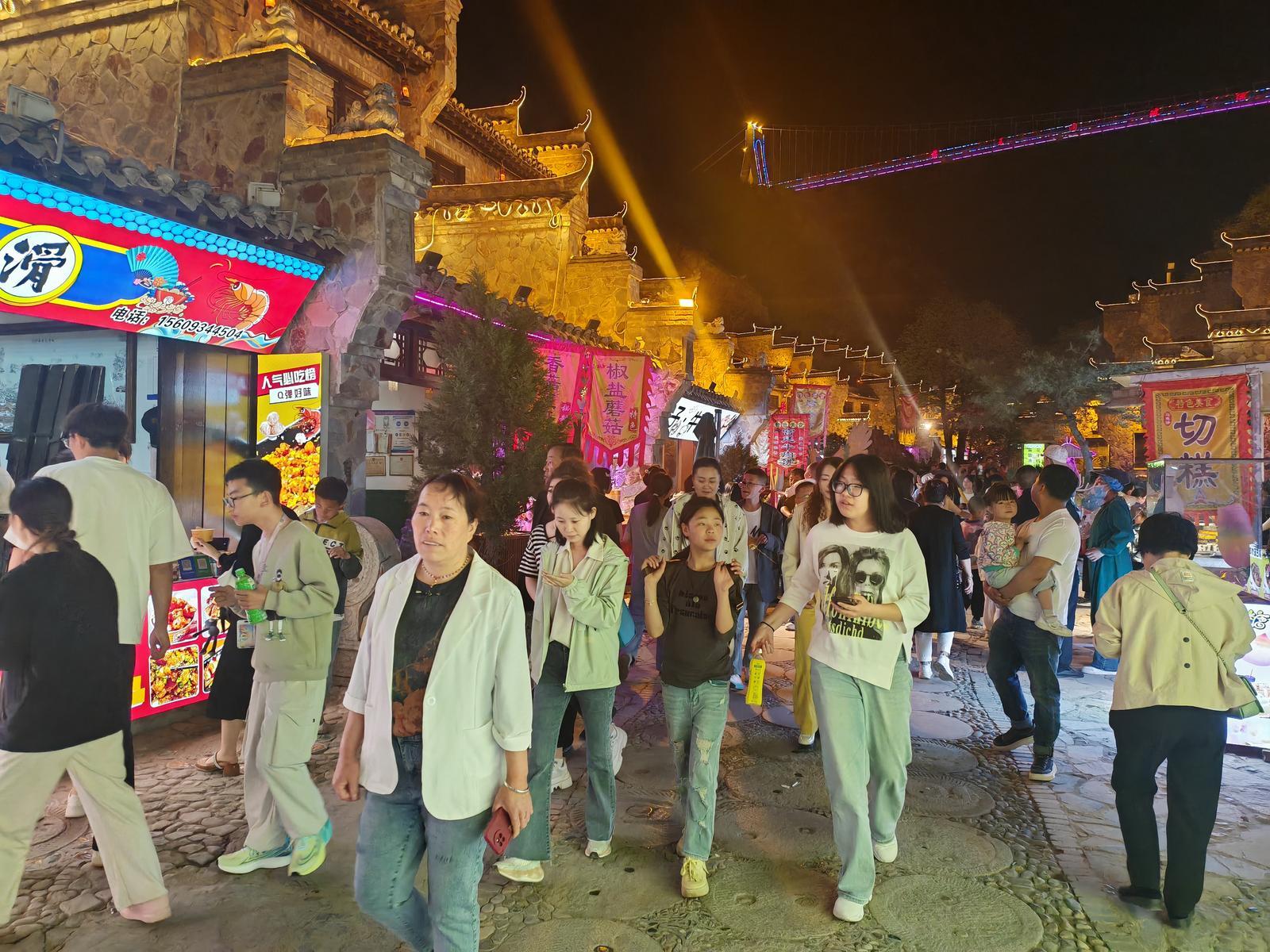 藥王洞養(yǎng)生小鎮(zhèn)小吃街,吸引了大量游客前來(lái)體驗(yàn)