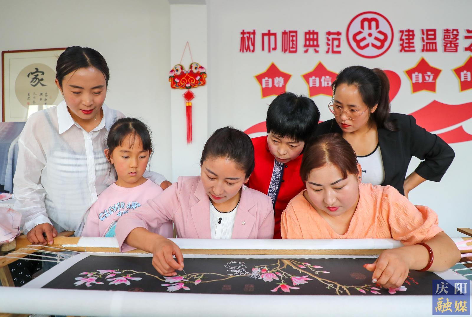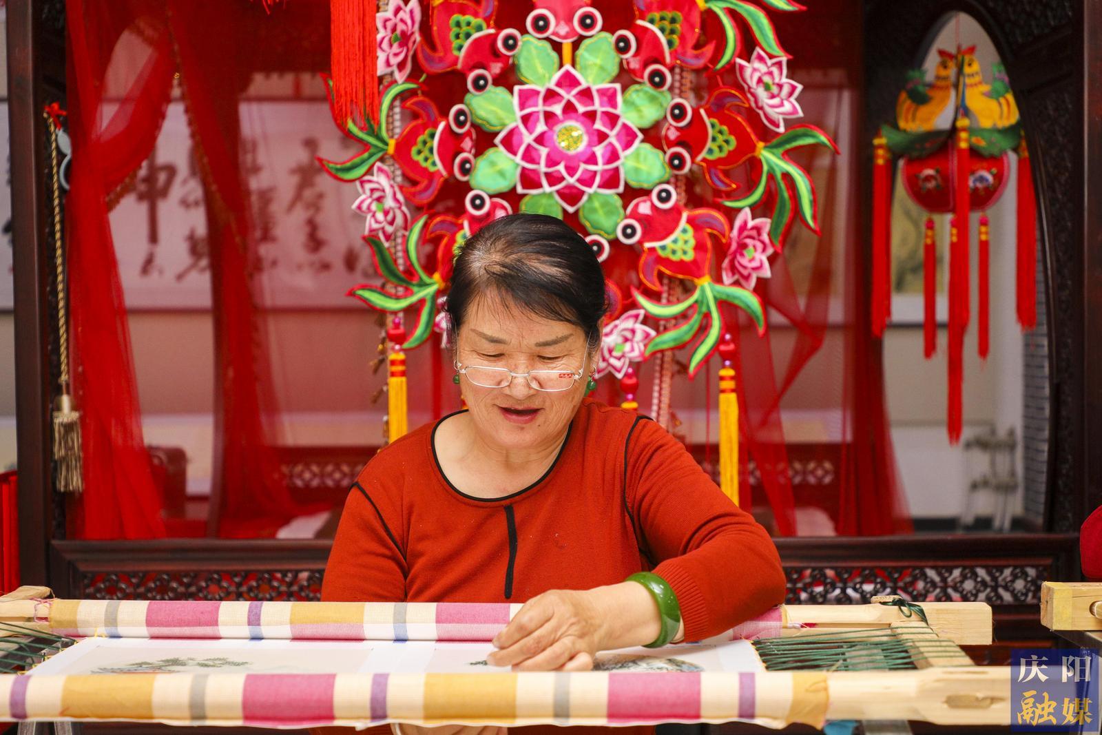 繡娘創(chuàng)作刺繡作品。 慶陽(yáng)融媒記者 俄少飛 攝