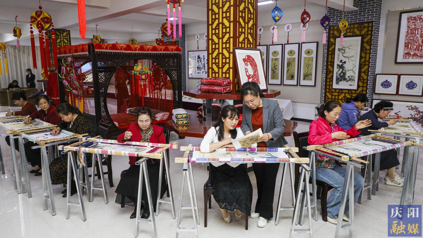 繡娘們?cè)趯W(xué)習(xí)刺繡技法。 慶陽(yáng)融媒記者 俄少飛 攝