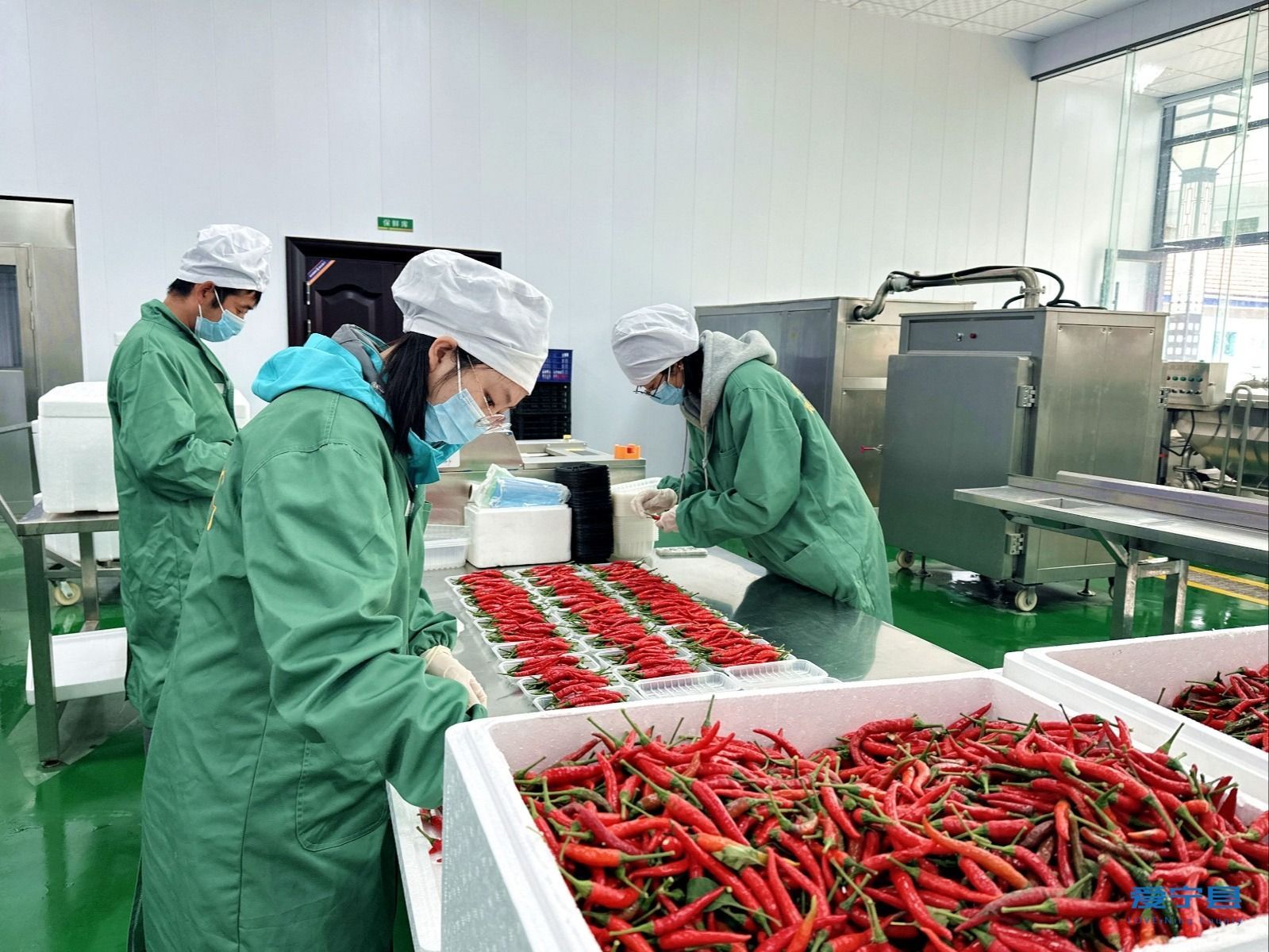 工人正在車間打包朝天椒