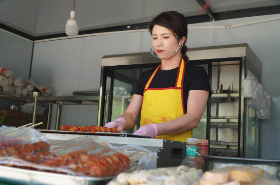 王肖虎主要經(jīng)營火爆魷魚、涼面等小吃?!伴T店都統(tǒng)一風(fēng)格、免費(fèi)使用,這樣就節(jié)省了房租費(fèi)用。”王肖虎說,開業(yè)1個多月,店里每天的銷售額都在幾百元至千元不等,假期游客多的時候,一天能賣4000多元。