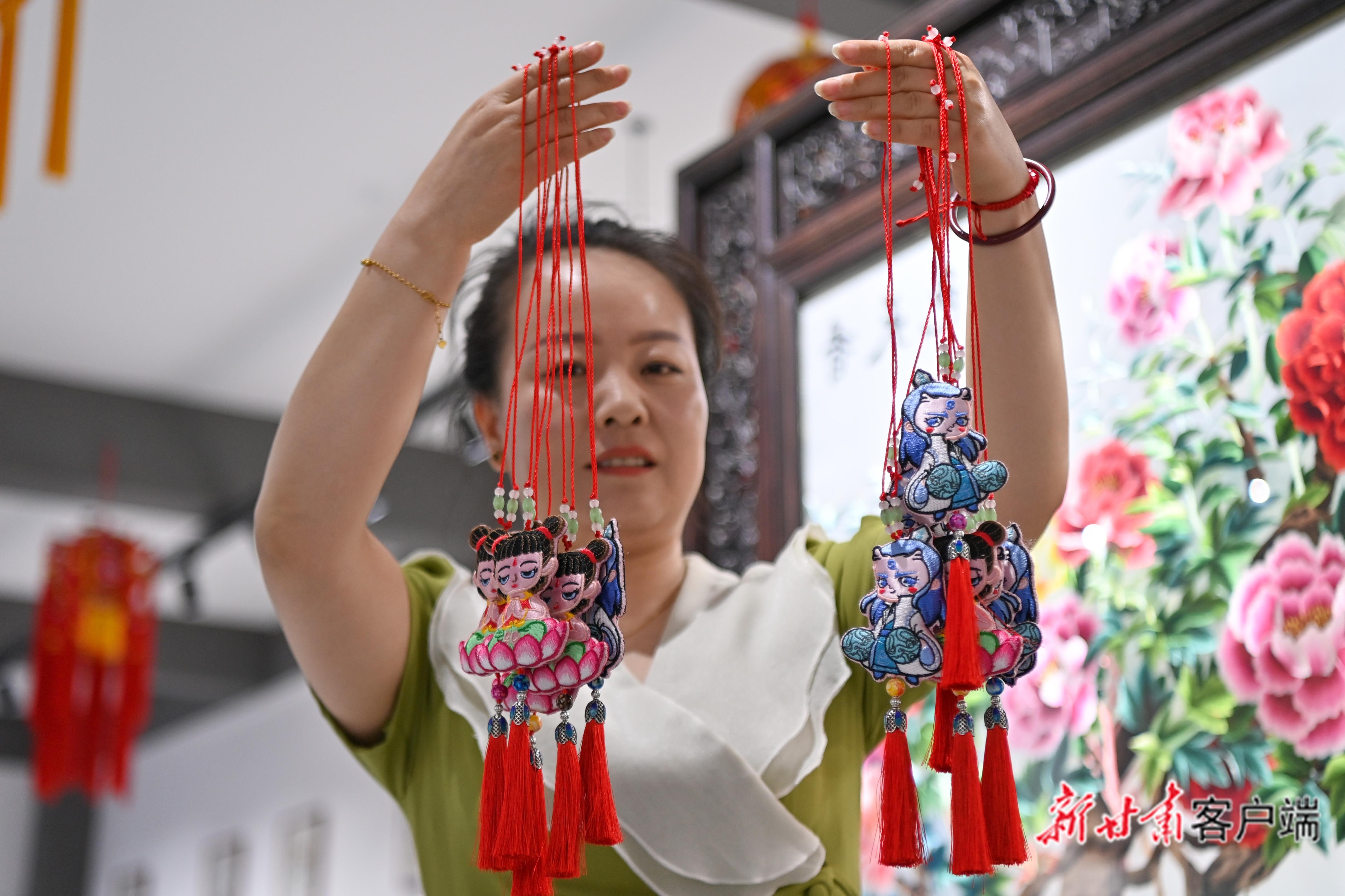 “您看這哪吒紋樣,是從最近火熱的電影作品上提取的元素?!痹诶C品陳列館里,既有登上巴黎時裝周、充滿科技感的AR交互香包,也有帶著泥土芬芳、充滿鄉(xiāng)土氣息的百家布老虎,傳統(tǒng)與現(xiàn)代在此交叉著,見證傳統(tǒng)技藝的傳承與創(chuàng)新,這些作品將隴東女子的巧思與智慧,繡進(jìn)世界的瞳孔,讓世界領(lǐng)略慶陽香包的獨特魅力。