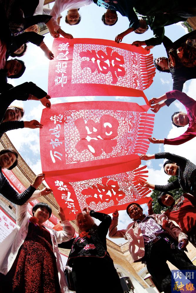 慶陽剪紙傳承人展示巨幅剪紙作品,喜迎節(jié)會(huì)。慶陽融媒記者 趙彩霞 攝