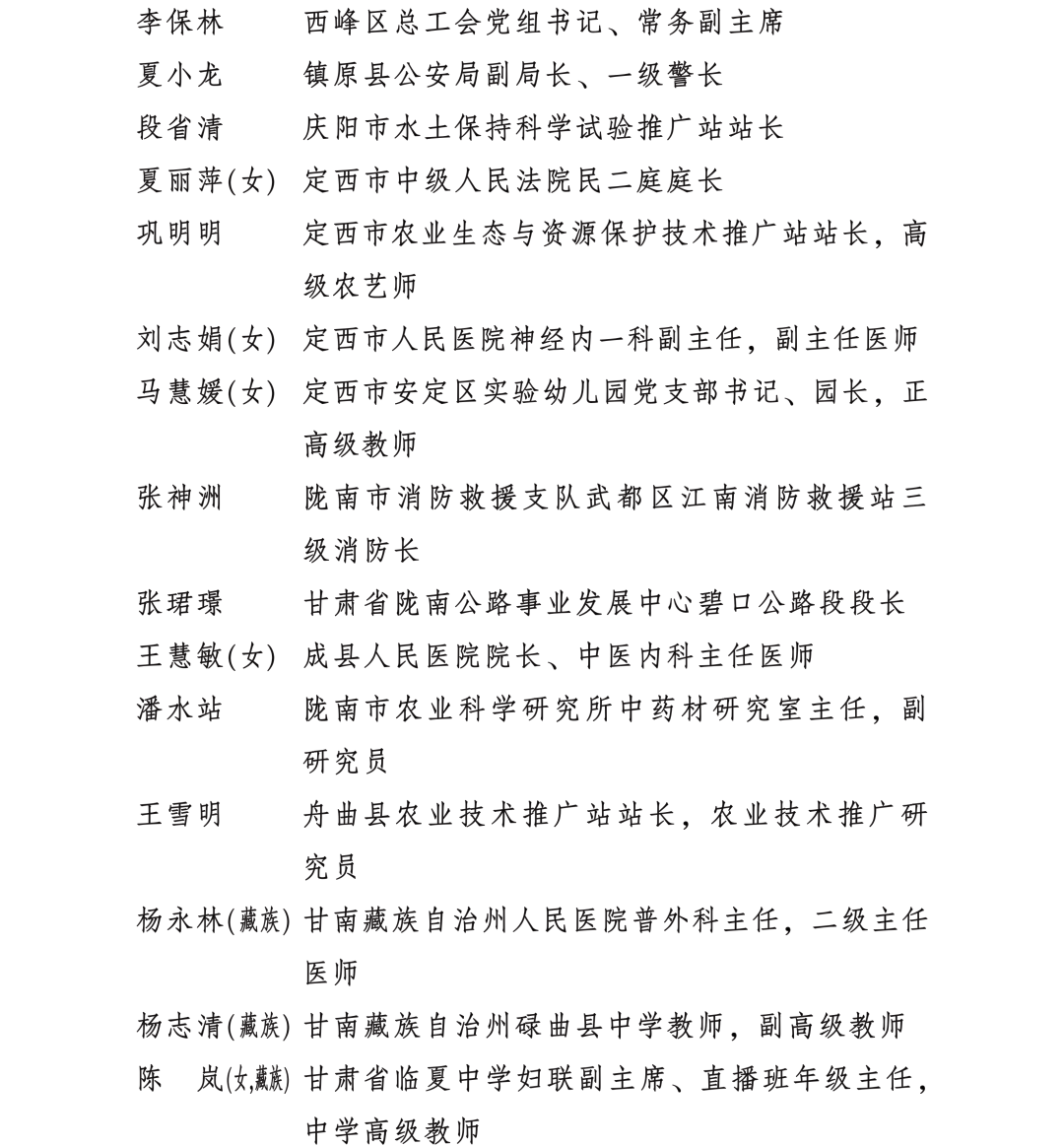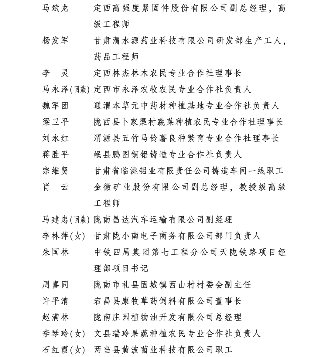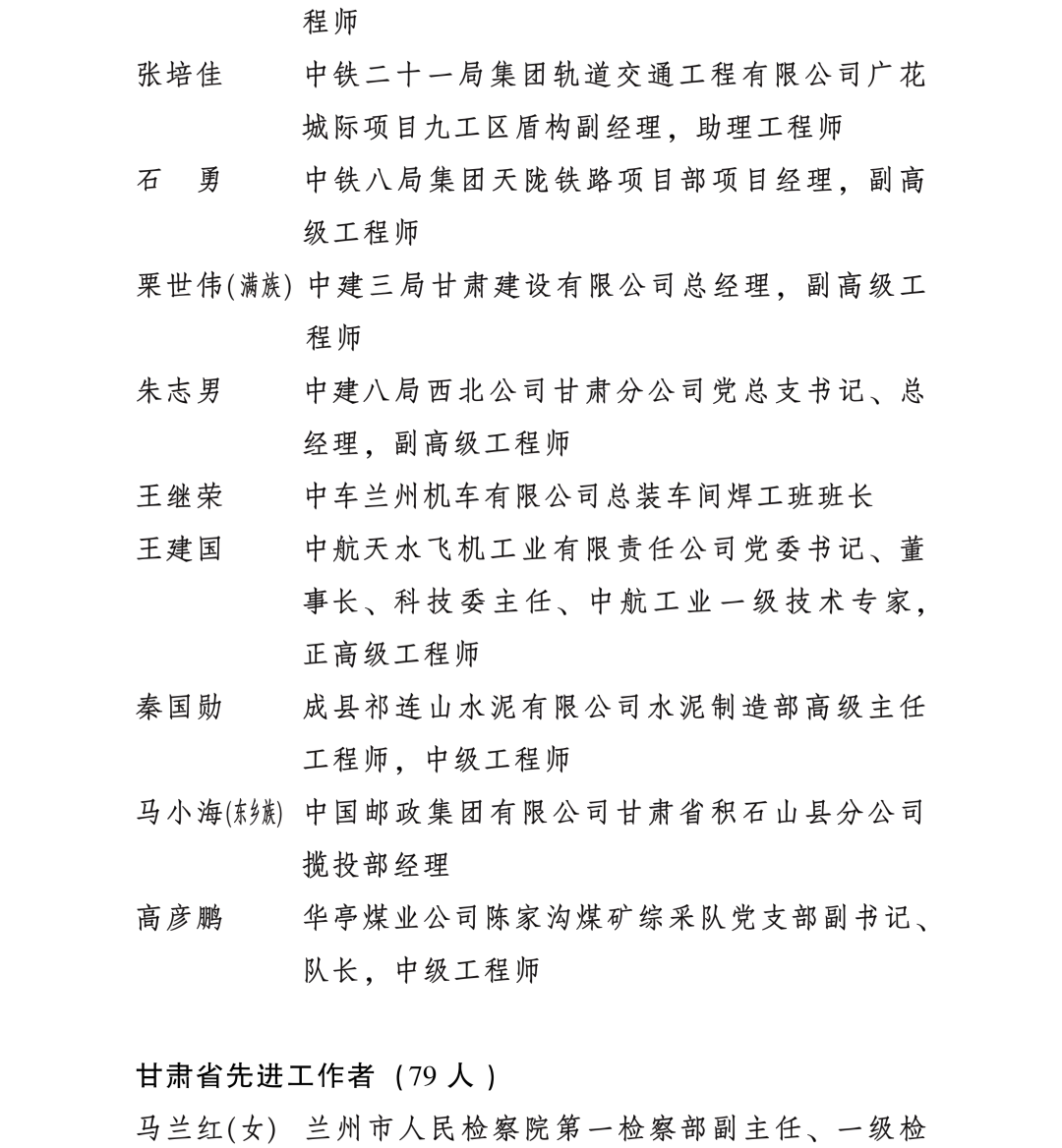 甘肅省勞動模范和先進工作者名單