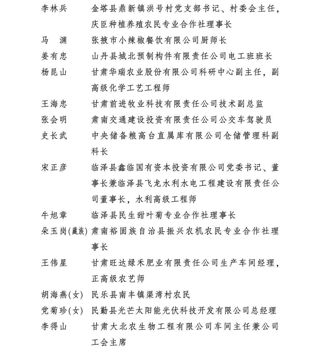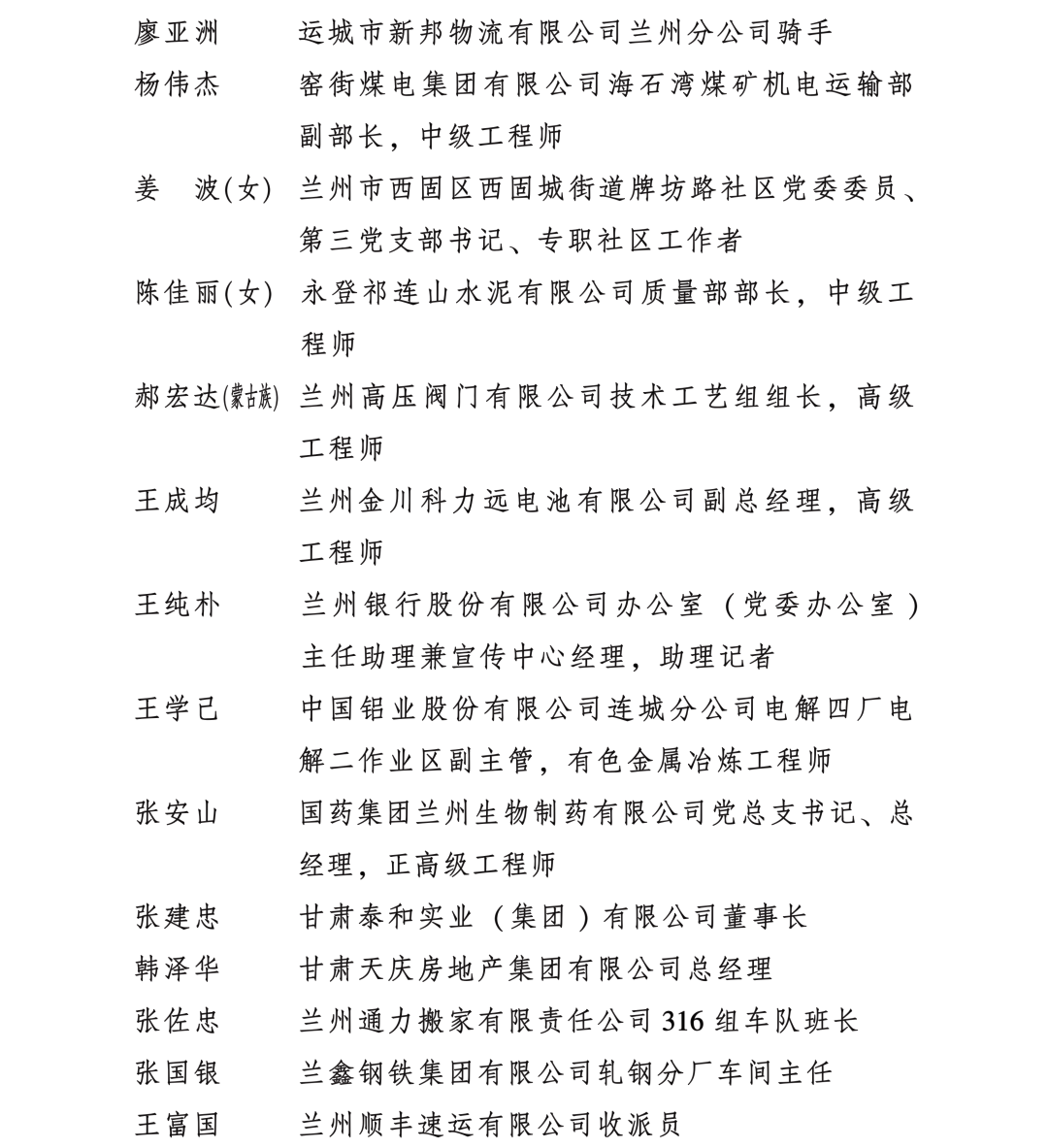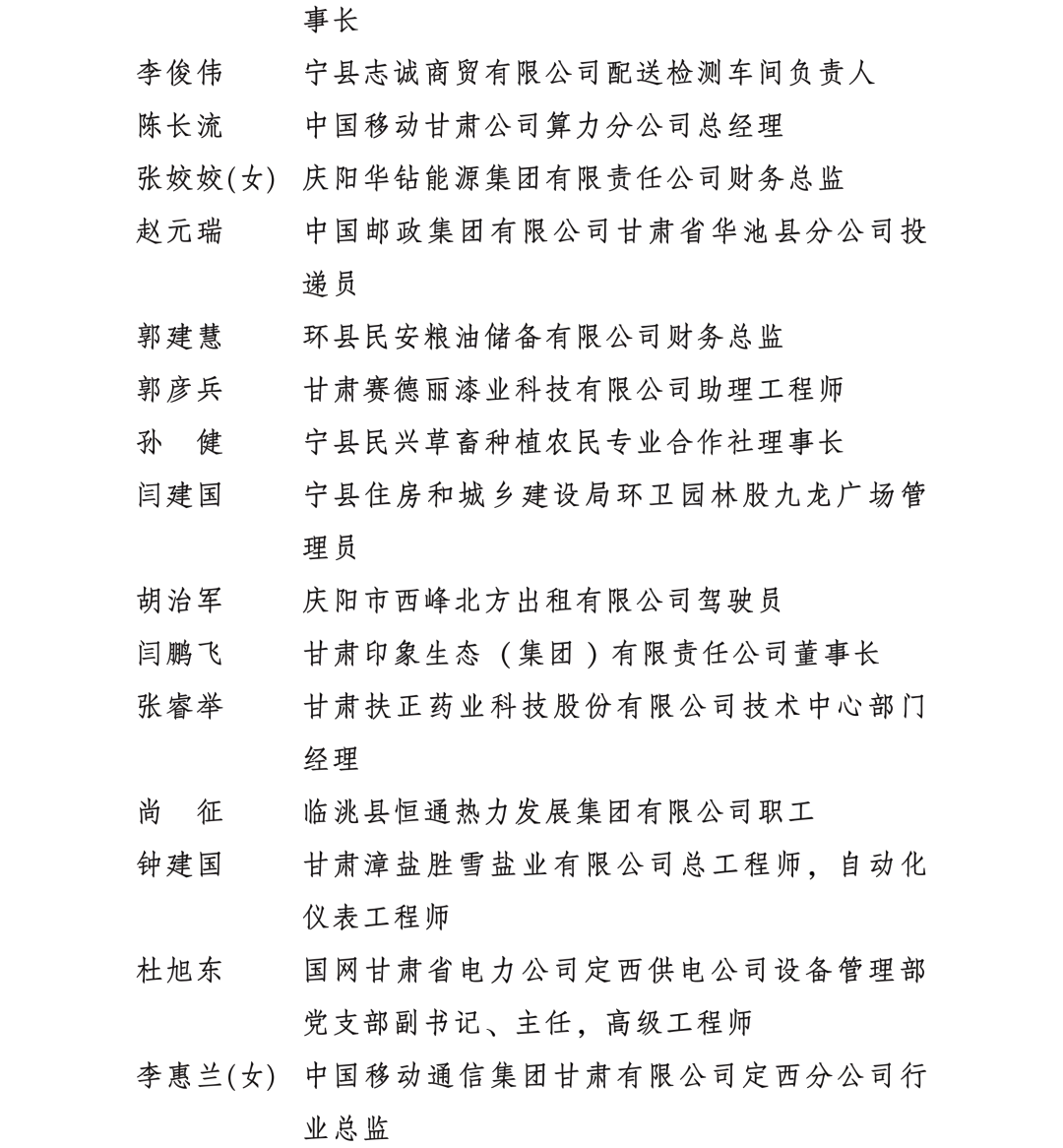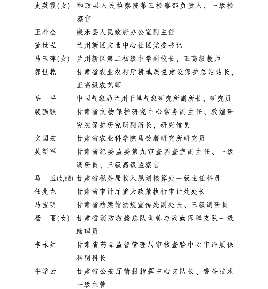 甘肅省勞動模范和先進工作者名單