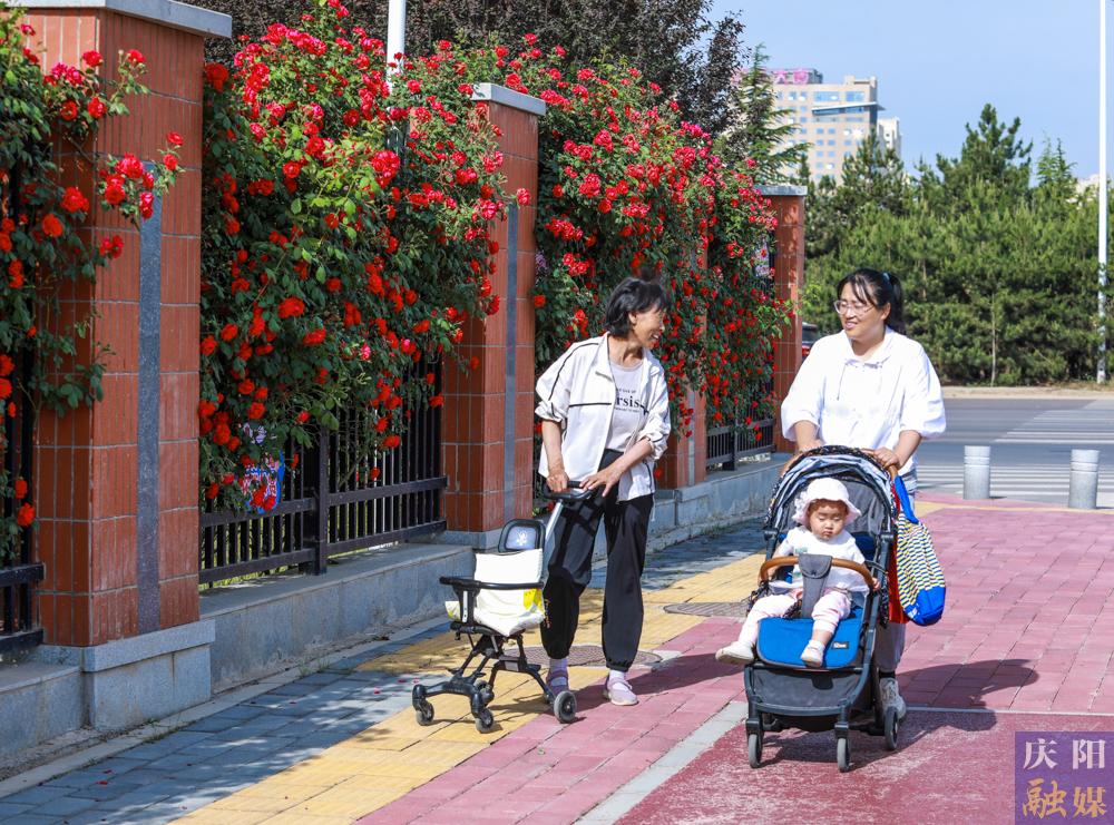 走近花墻,花開如瀑,花朵沿著墻面肆意舒展,層層簇?fù)?,微風(fēng)拂過,花枝輕搖,香氣沁人心脾。為方便市民打卡,北師大慶陽(yáng)實(shí)驗(yàn)學(xué)校特意在花叢周邊掛上了各類溫馨提示與介紹卡片,卡片內(nèi)容包含薔薇花的品種知識(shí),還有鼓勵(lì)大家文明賞花的話語,為這片美景增添了一份人文關(guān)懷。