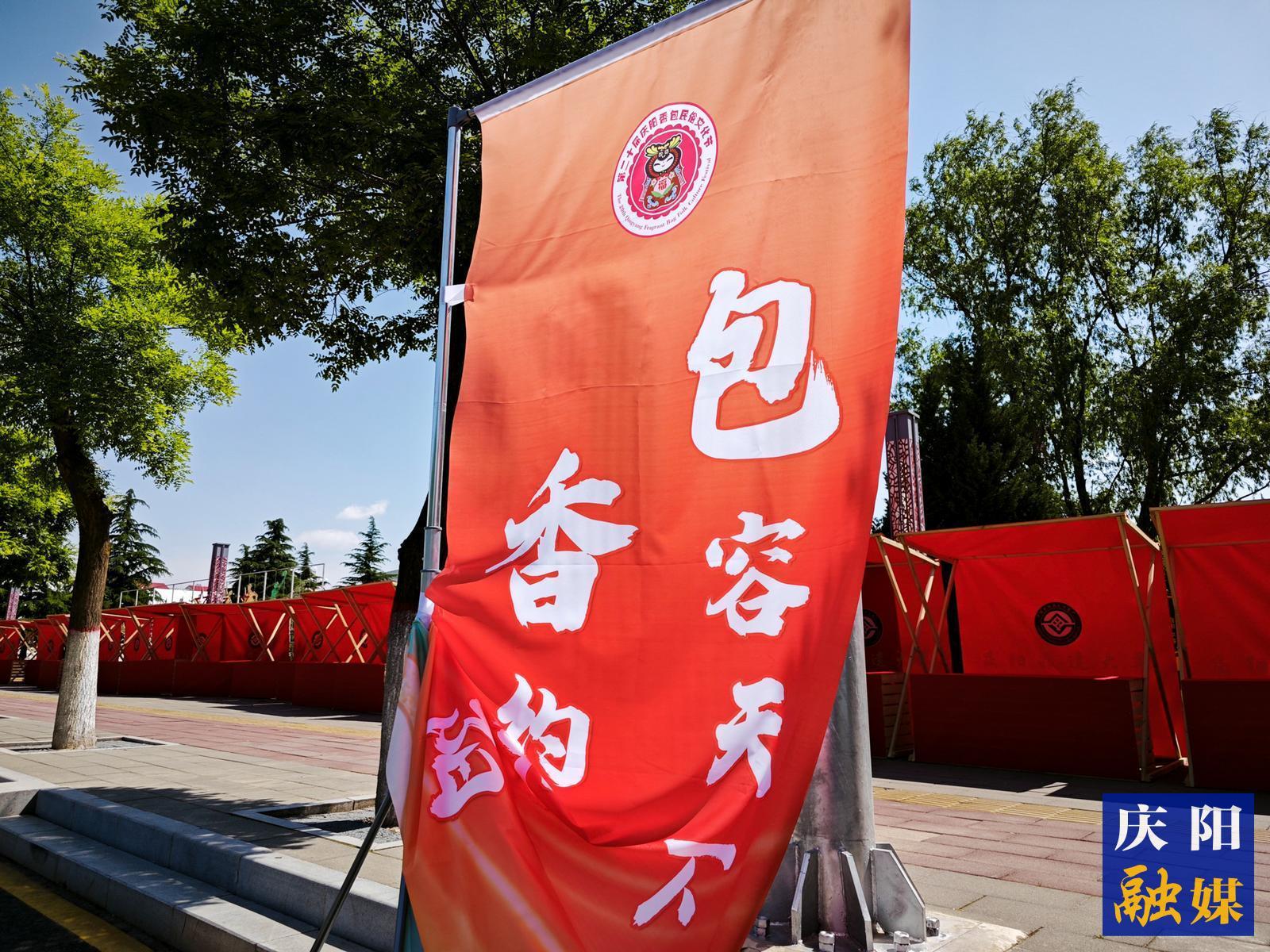 西峰區(qū)岐黃大道兩側(cè)道旗飄揚,非遺大集展位完成搭建。