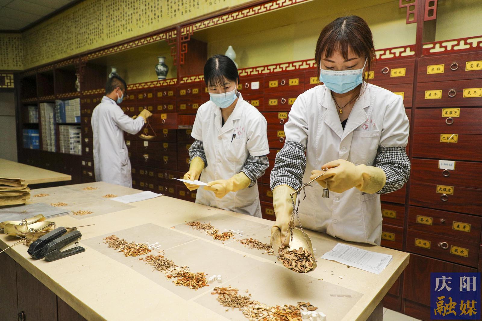 慶城縣岐伯中醫(yī)醫(yī)院的醫(yī)護人員配制中草藥。慶陽融媒記者 俄少飛 攝