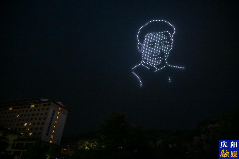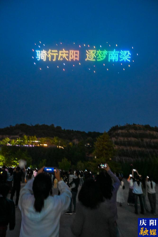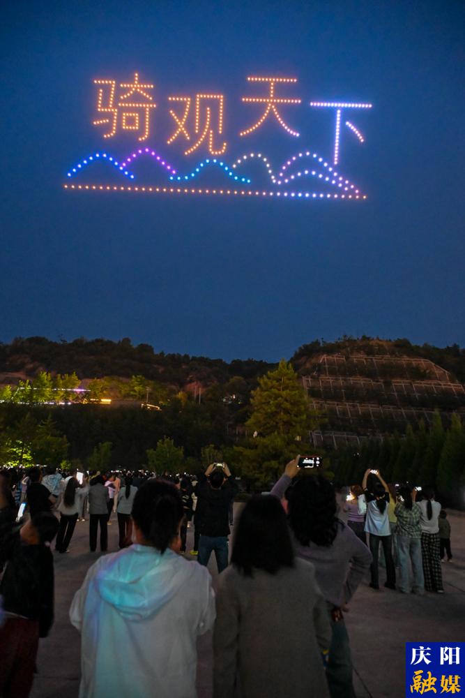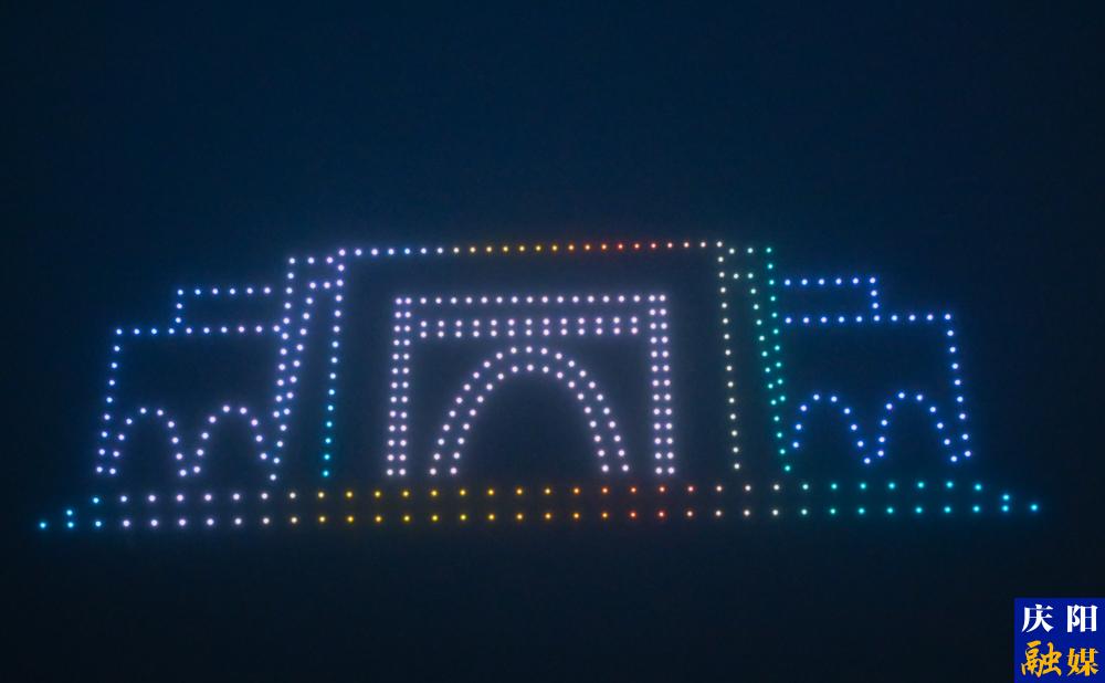 當南梁紀念館的立體造型顯現(xiàn)云端,“騎行慶陽 逐夢南梁”字幕在300米高空粲然綻放,夜空瞬間化作宇宙級光影劇場??萍汲绦蚺c藝術(shù)創(chuàng)意的精密咬合在此刻迸發(fā)魔力,無人機群時而化作銀河瀑布傾瀉而下,時而重組為對慶陽的浪漫表白,每秒的燈光變幻,都是算法與美學的交響詩,引發(fā)現(xiàn)場眾人齊聲驚嘆。坐標代碼編織出比煙火更絢爛、比星空更可控的奇景,共同點了亮高原小城的夏夜之夢。