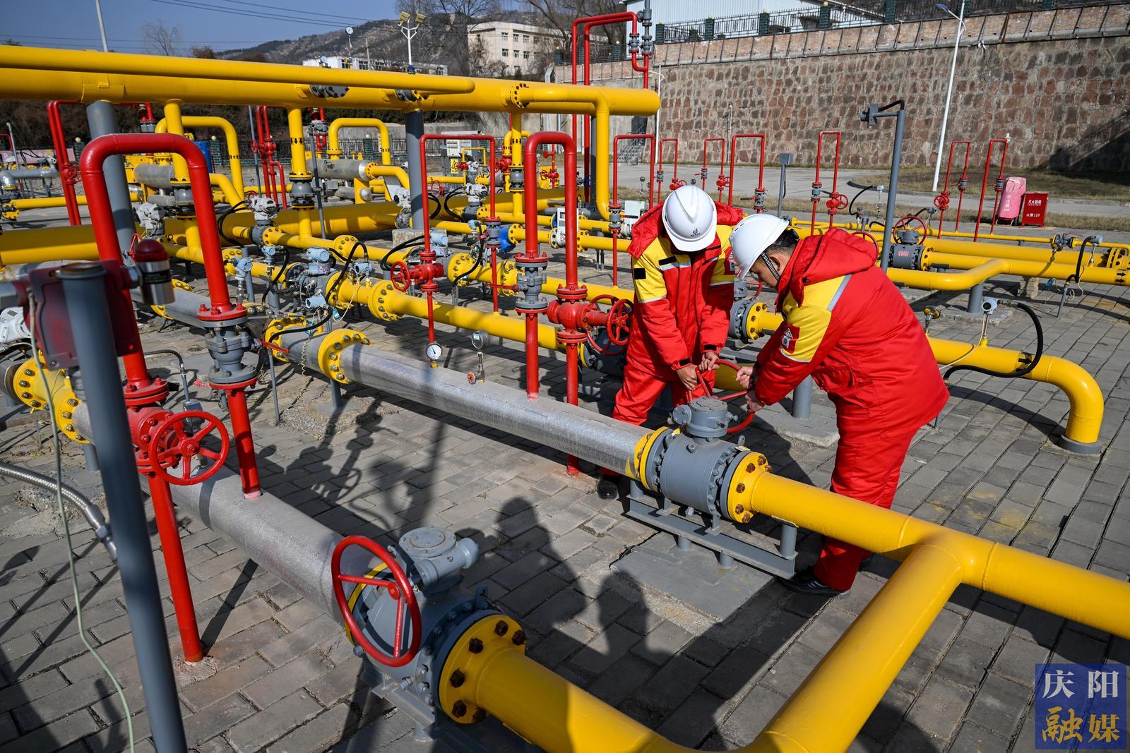 慶陽(yáng)永慶慶城天然氣有限公司CNG母站,工作人員巡檢天然氣管道。慶陽(yáng)融媒記者 俄少飛 攝