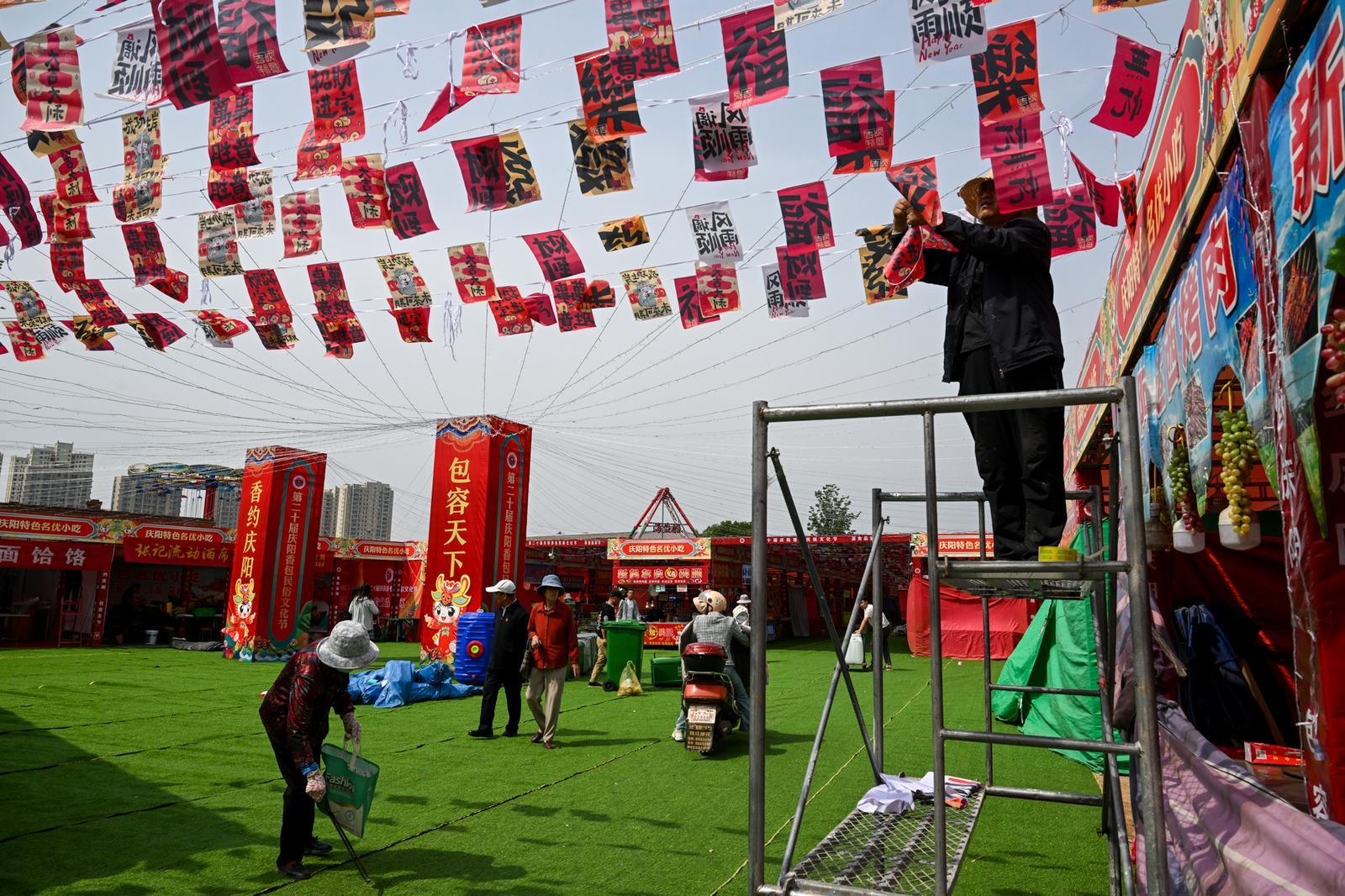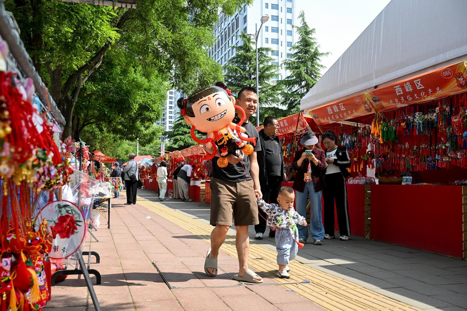 岐黃大道一側(cè)非遺大集展位,民俗手工藝品已開始展銷。