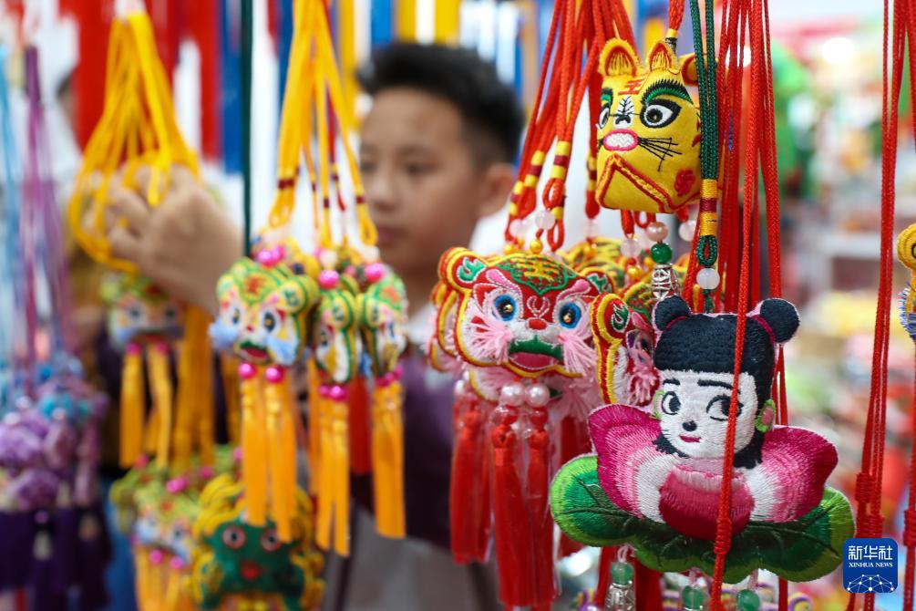 5月29日,市民在慶陽(yáng)香包民俗文化節(jié)非遺沉浸體驗(yàn)區(qū)選購(gòu)香包。新華社記者 郎兵兵 攝