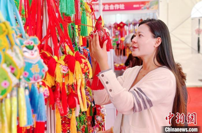 5月29日,第二十屆慶陽(yáng)香包民俗文化節(jié)展銷會(huì)上,民眾挑選香包。高展 攝